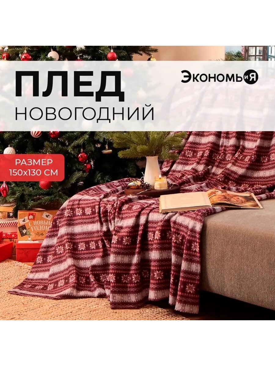 Новый год. Плед Экономь и Я "Новогодний узор" 150*200см, пл.160 г/м2, 100% п/э