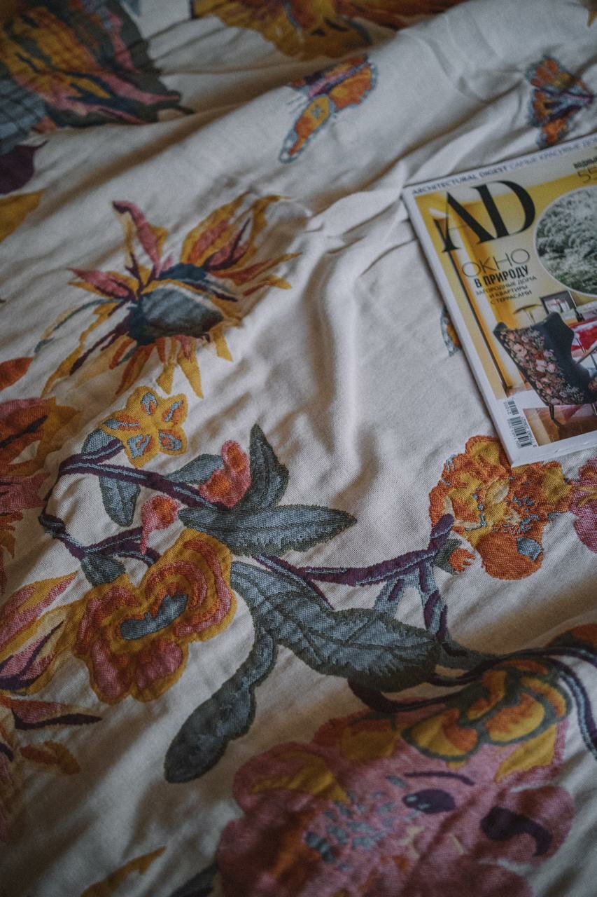 СохранитьПокрывало на кровать 200х230 см муслин цветы и листья интересное:
