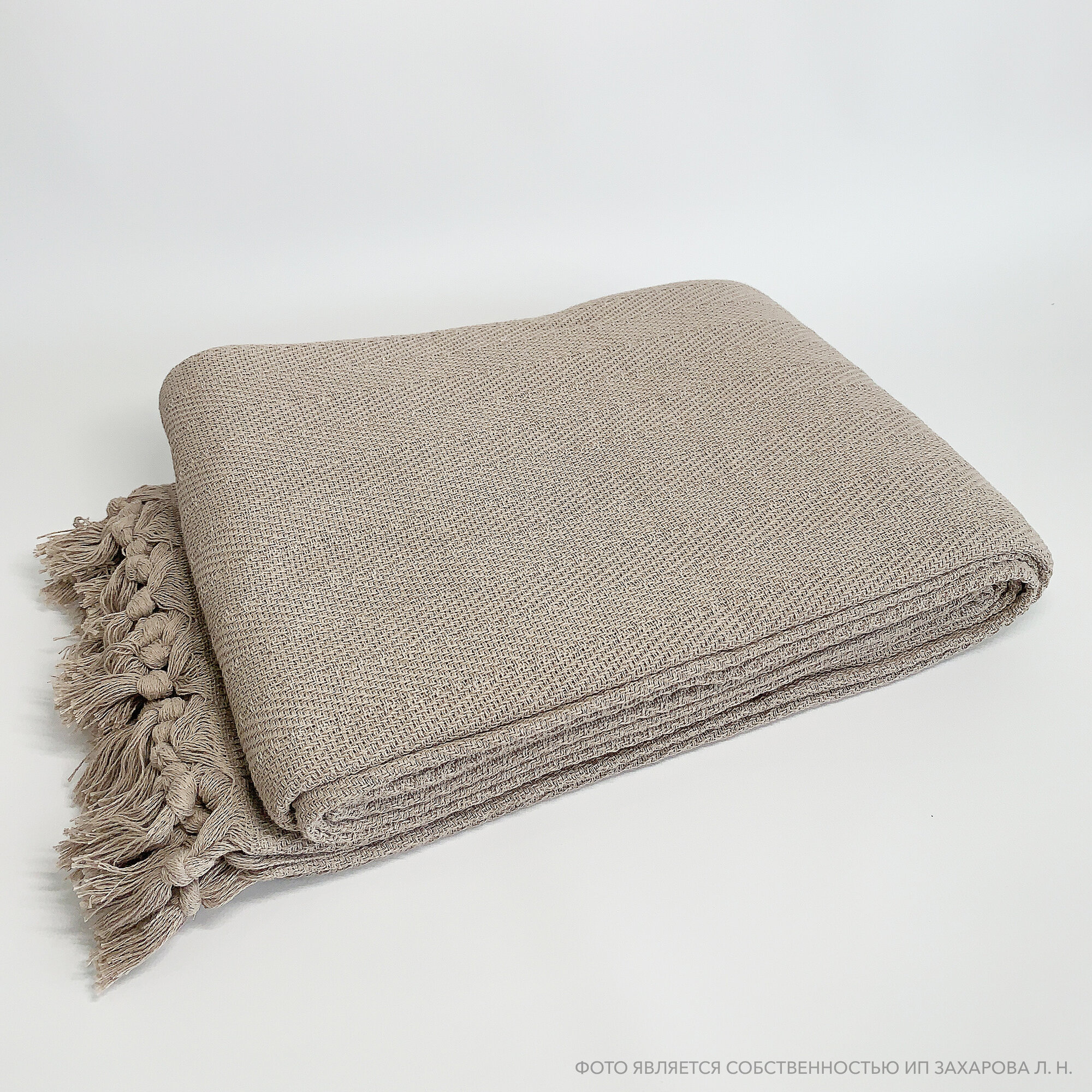 Покрывало-плед на кровать 220х240 см хлопок двухсторонний, бежевый