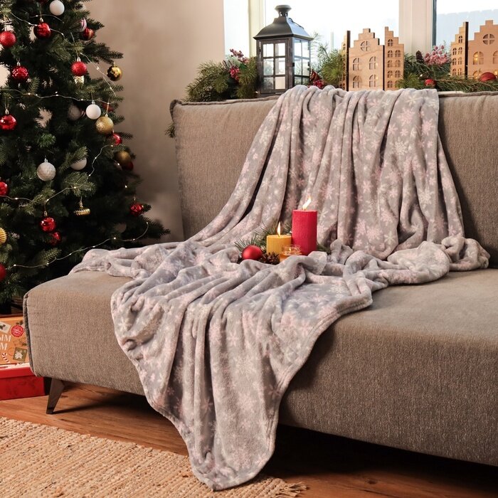Плед "Серые снежинки" 200*220 см,100% п/э, велсофт 280 гр/м2