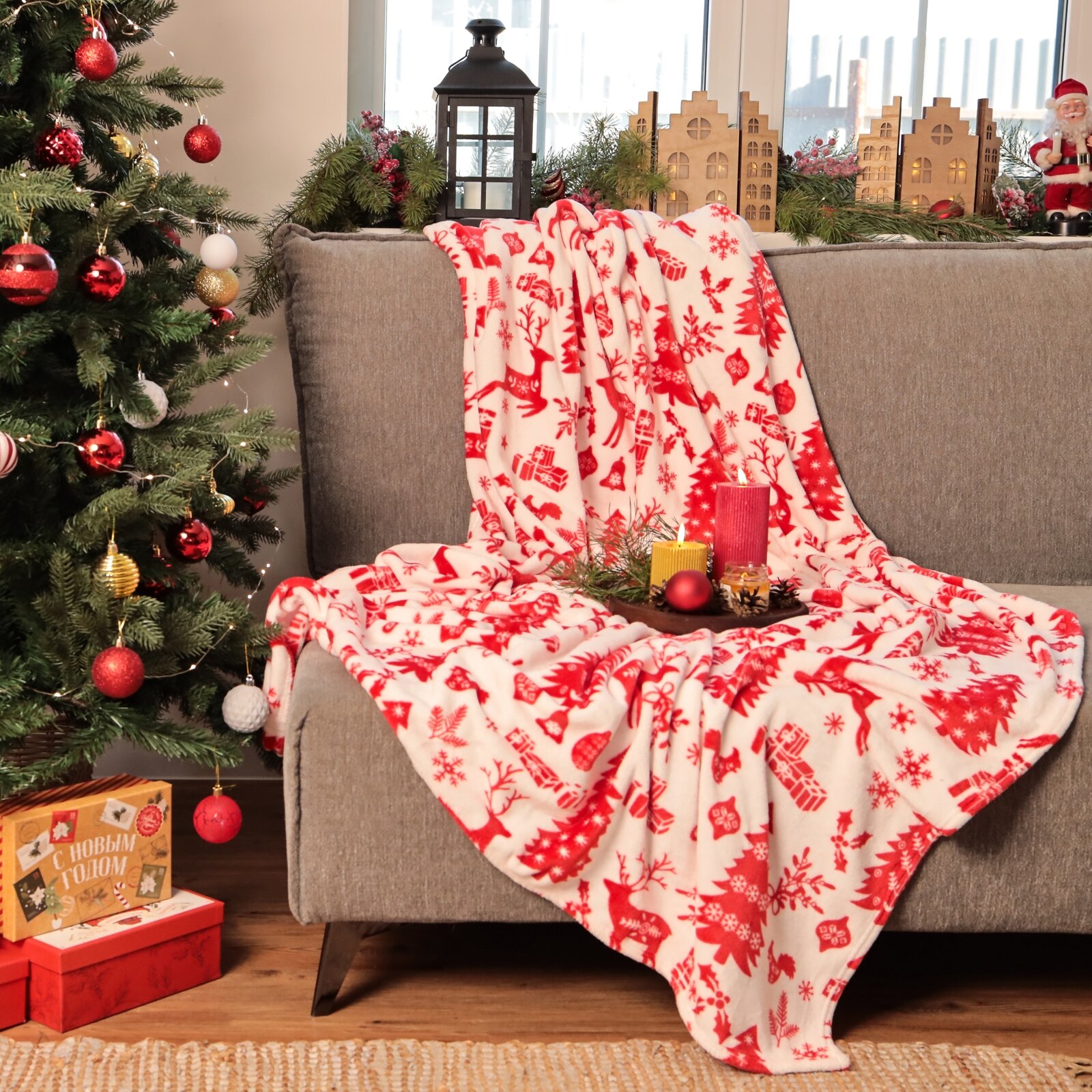 Плед LoveLife "Новогоднее настроение" 180*200 см,100% п/э, велсофт 280 гр/м2