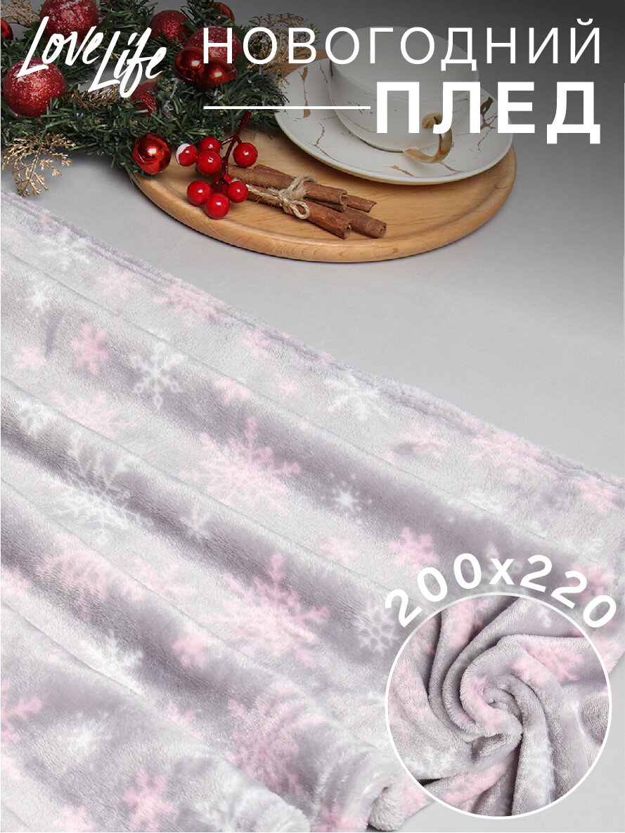 Новый год. Плед LoveLife "Серые снежинки" 200*220 см,100% п/э, велсофт 280 гр/м2