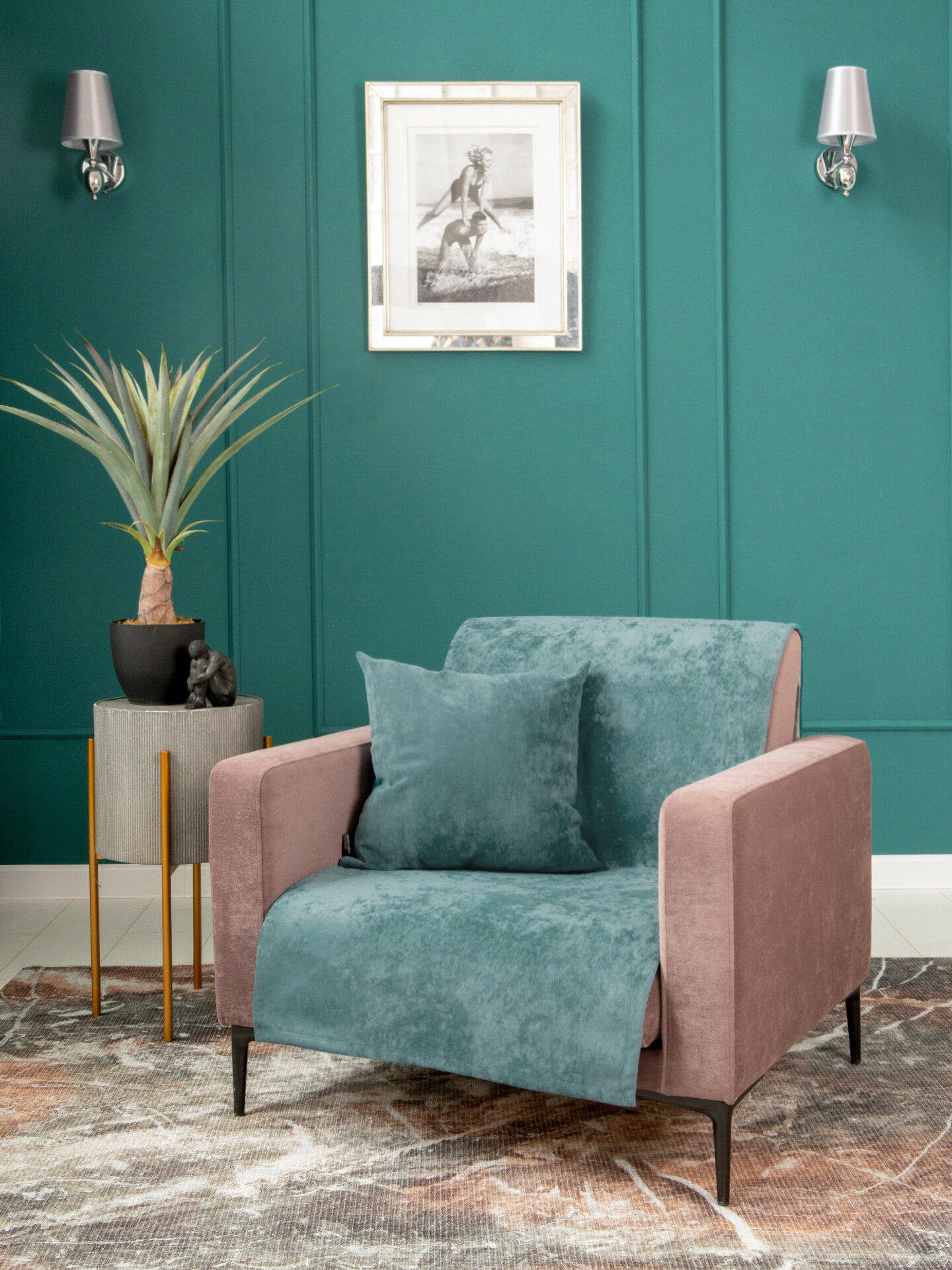 СохранитьНакидка на диван угловой 65x170 см SLIM OPERA MINT, велюр интересное: