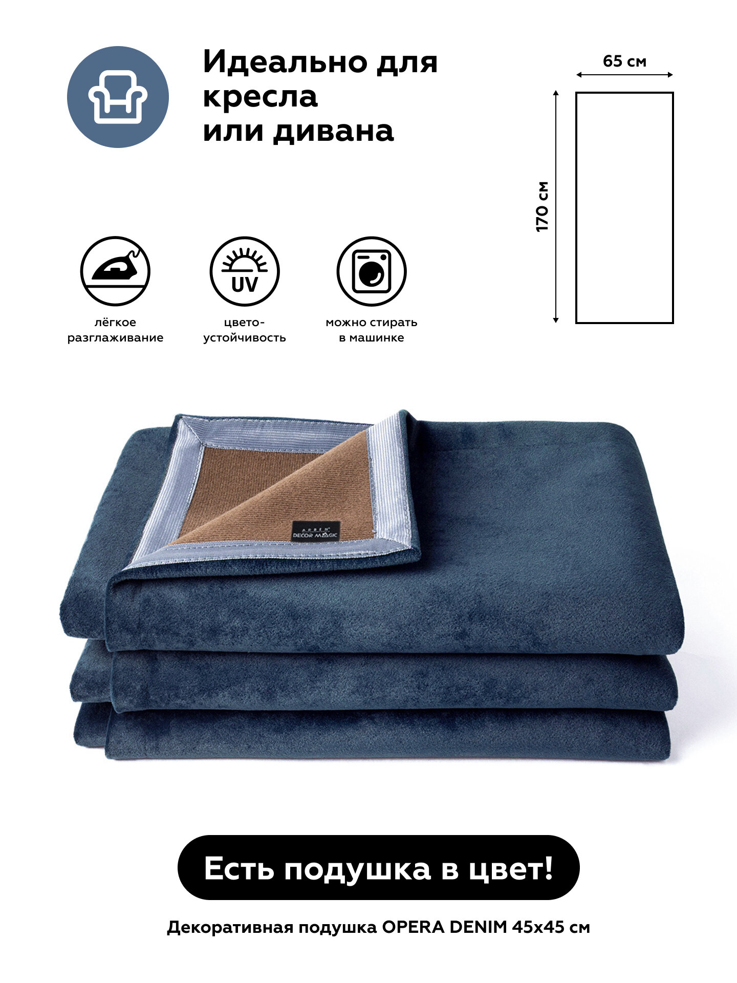 СохранитьНакидка на кресло 65x170 см SLIM OPERA DENIM, велюр интересное: