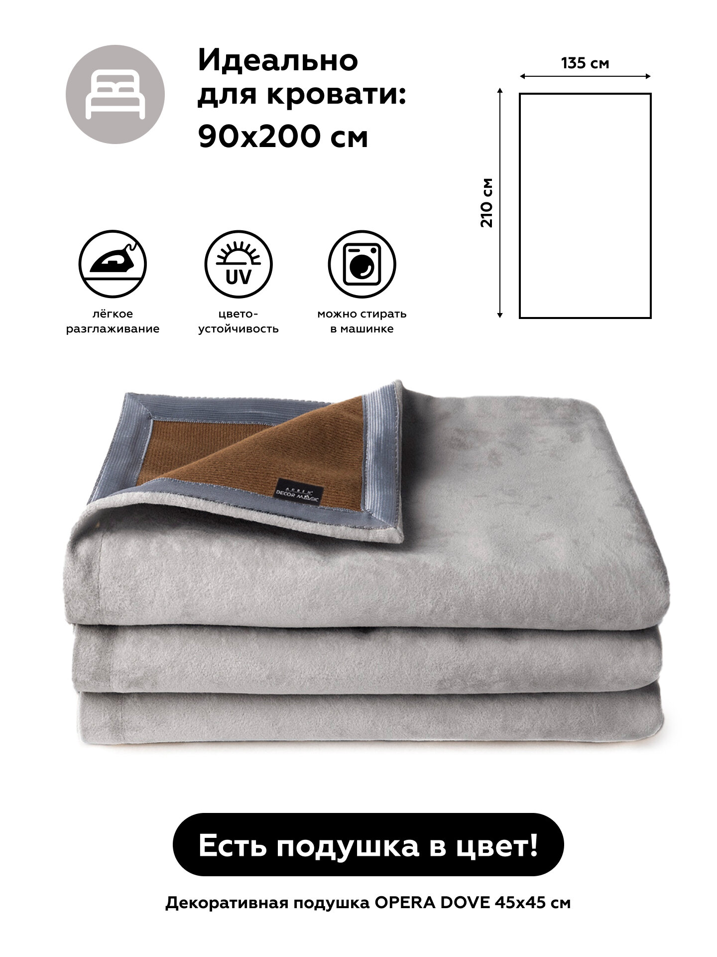 СохранитьПокрывало на кровать 135x210 см UNO OPERA DOVE интересное: