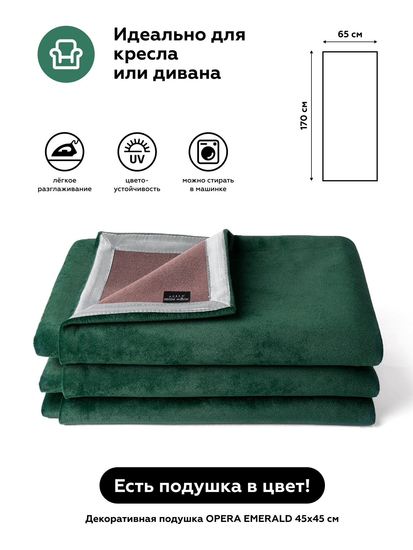 СохранитьНакидка на диван прямой 65x170 см SLIM OPERA EMERALD интересное: