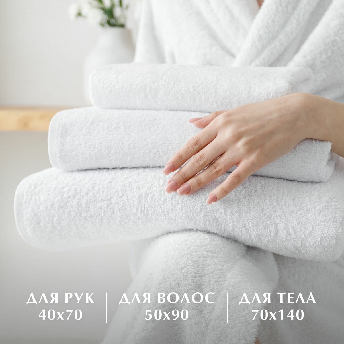Купить Набор полотенец махровых, Guten Morgen, Белый 3 шт. 40х70, 50х90, 70х140, хлопок 100%, 400 г/м2