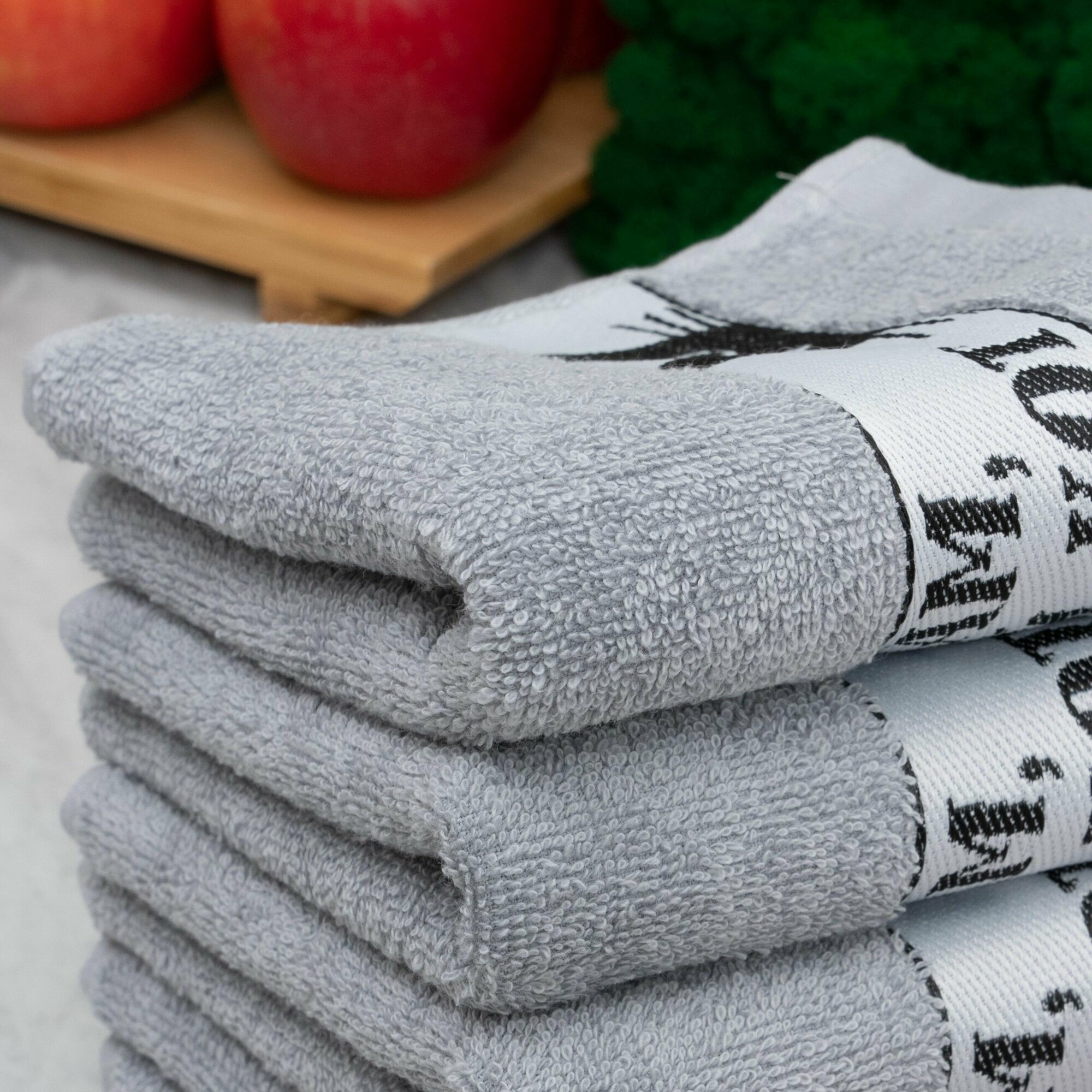 Полотенца махровые кухонные 30х60 см, набор 5 шт, Китчен, городок / серые