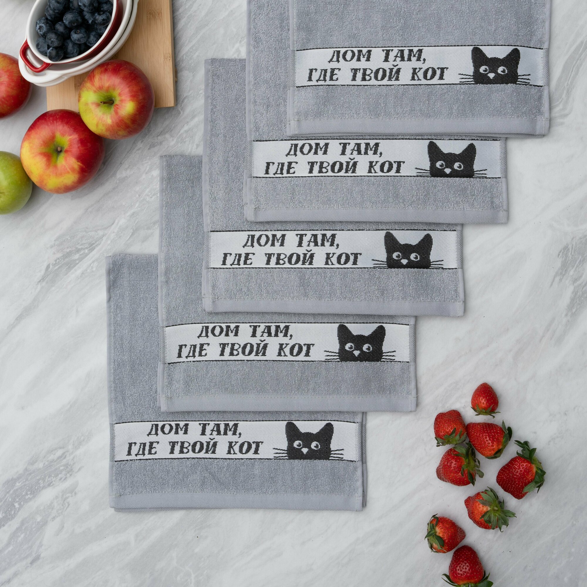 СохранитьПолотенца махровые кухонные, 30х60 см, набор 5 шт, Китчен Кот, светло-серые интересное: