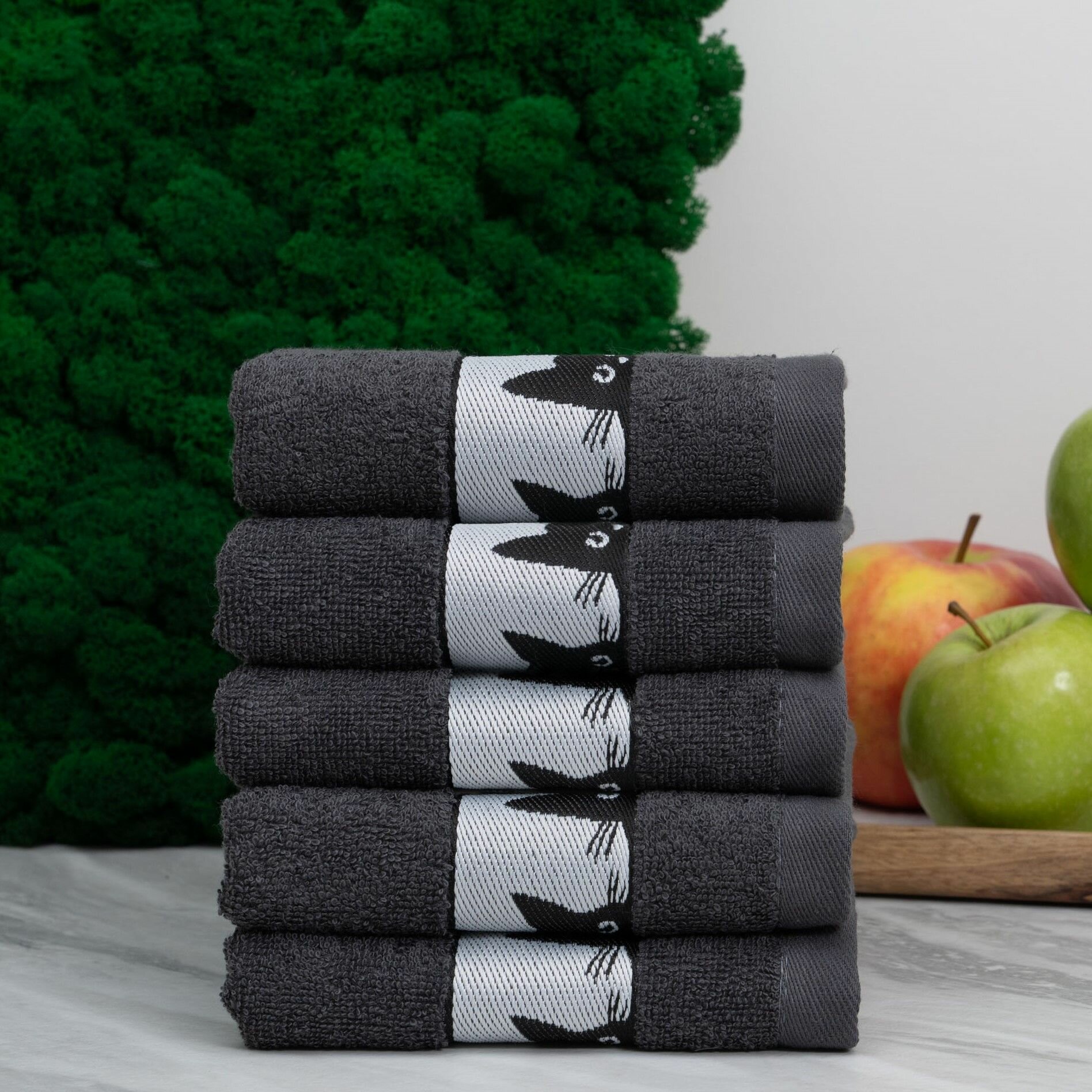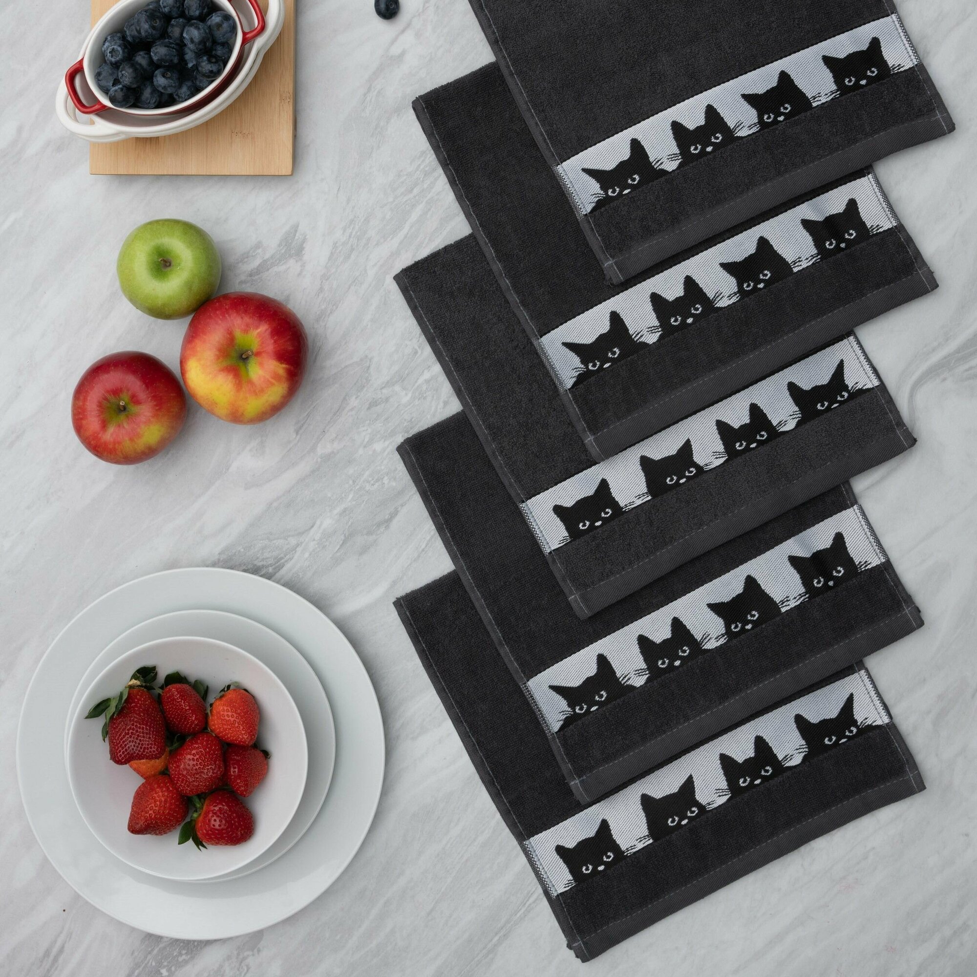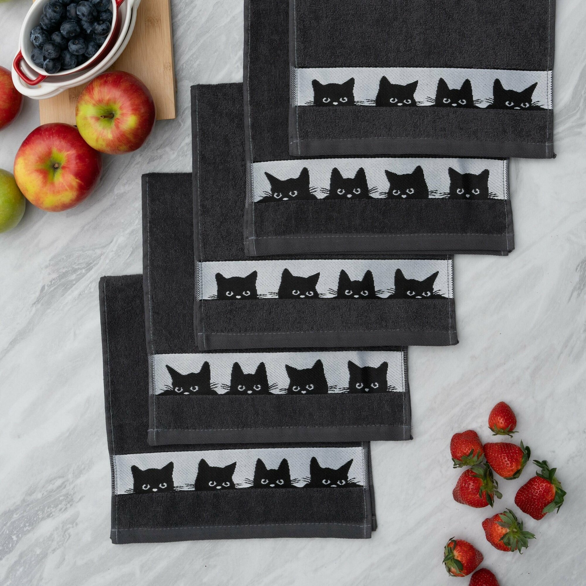 Полотенца махровые кухонные, 30х60 см, набор 5 шт, Китчен Кот, темно-серые