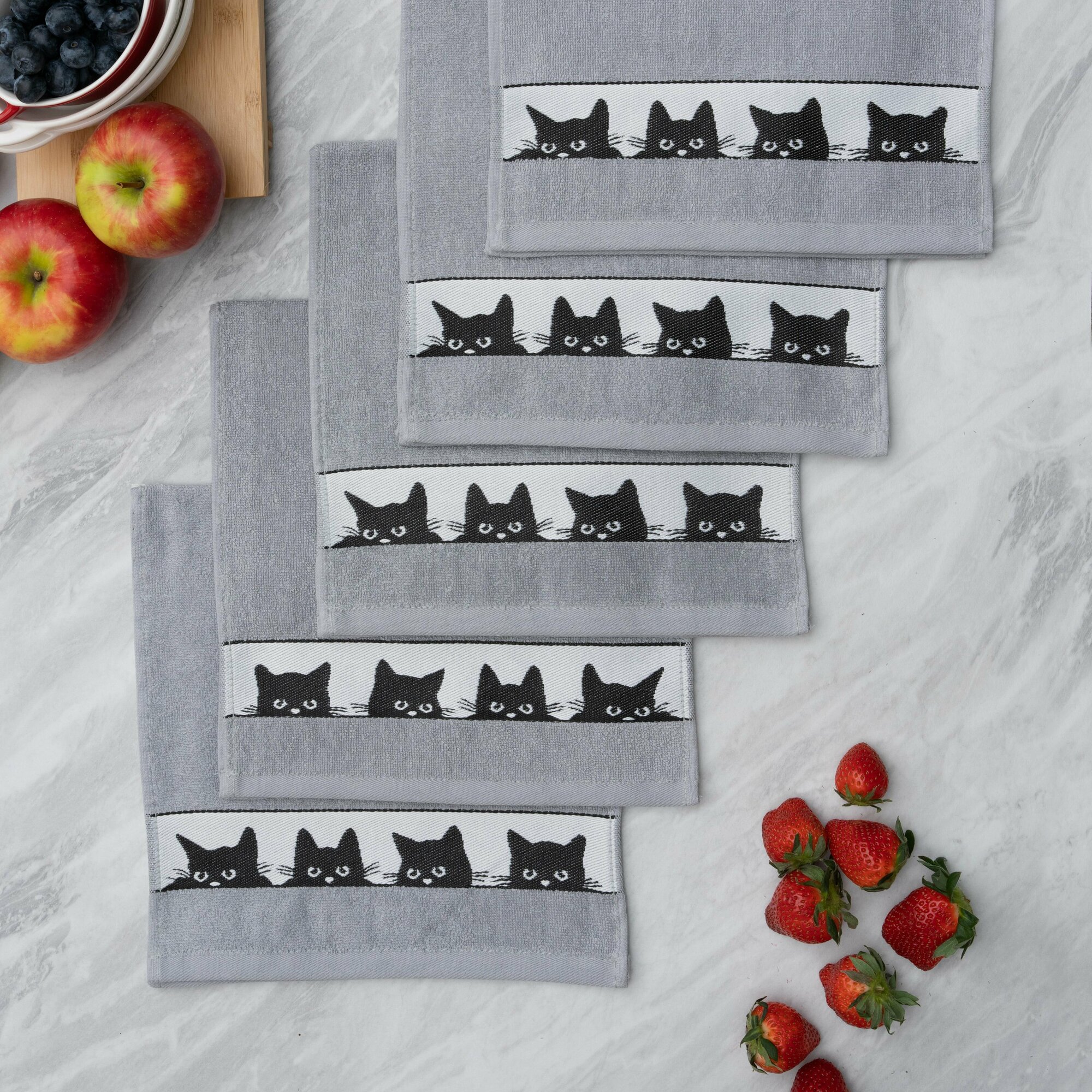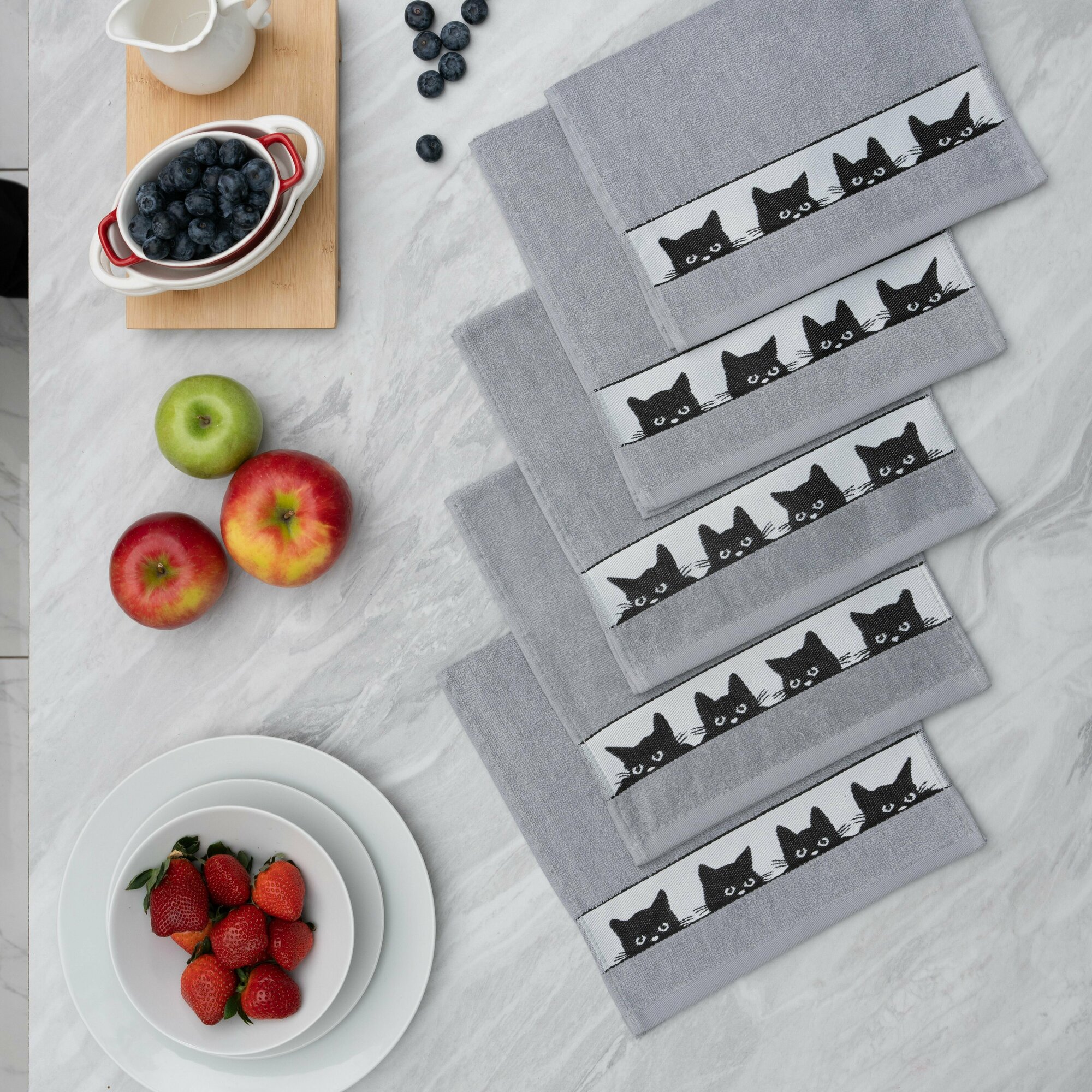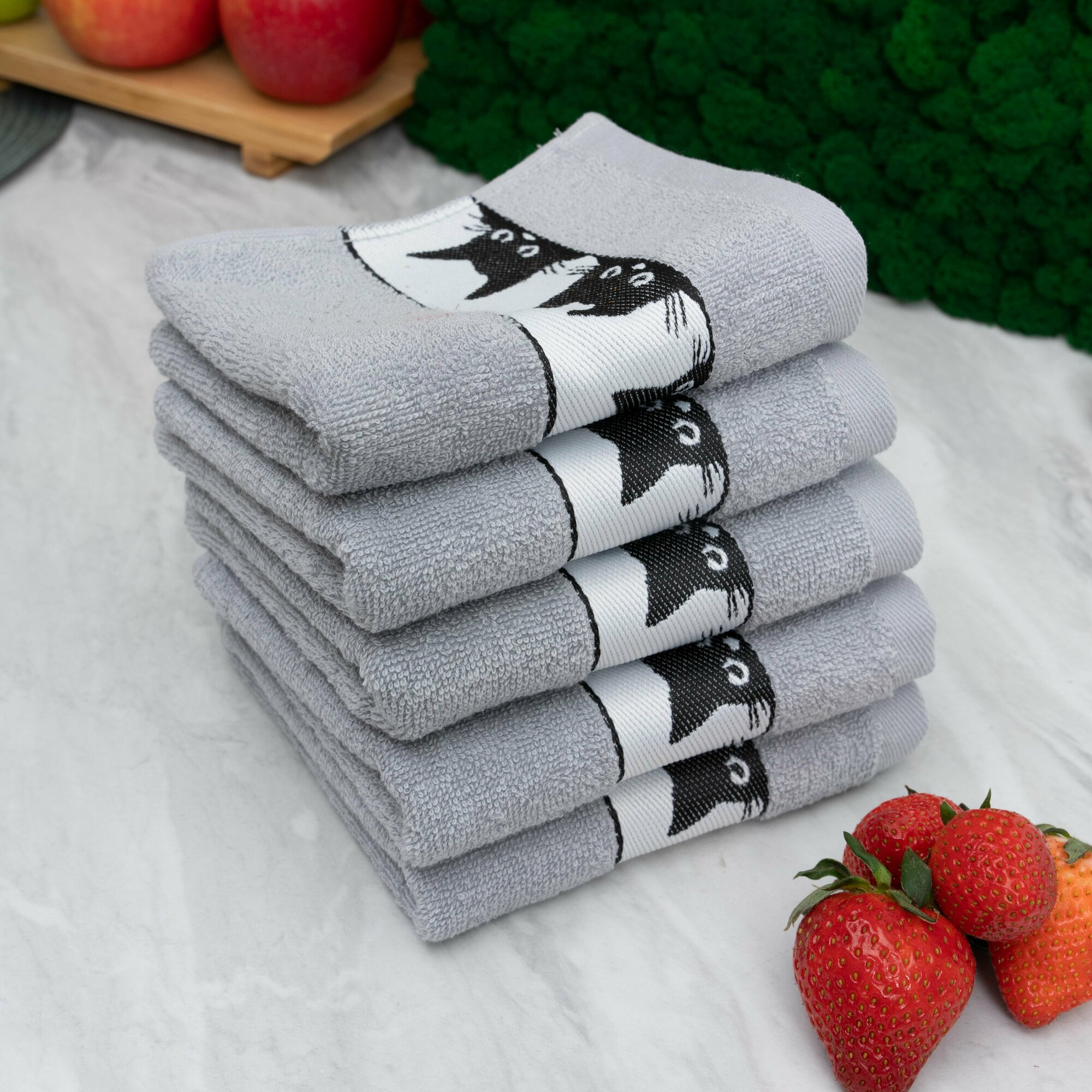 Купить Полотенца махровые кухонные, 30х60 см, набор 5 шт, Китчен Котик, светло-серые
