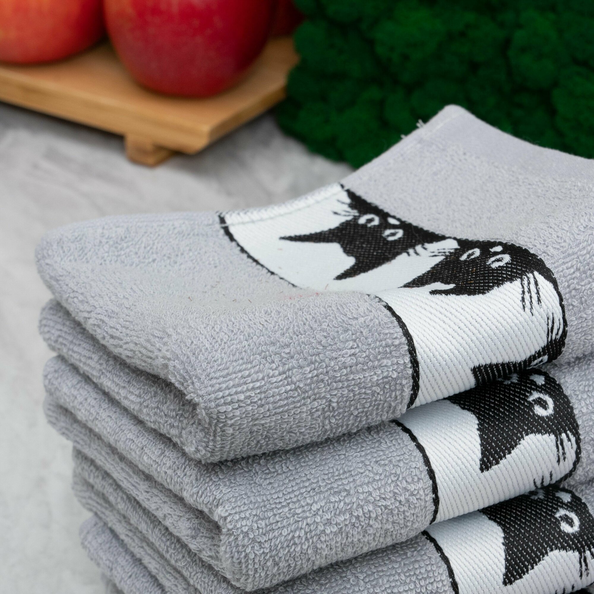 Полотенца махровые кухонные, 30х60 см, набор 5 шт, Китчен Котики, темно-серые