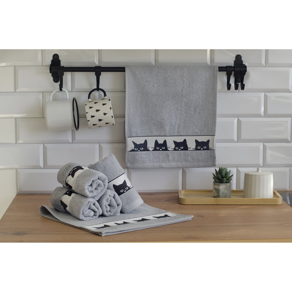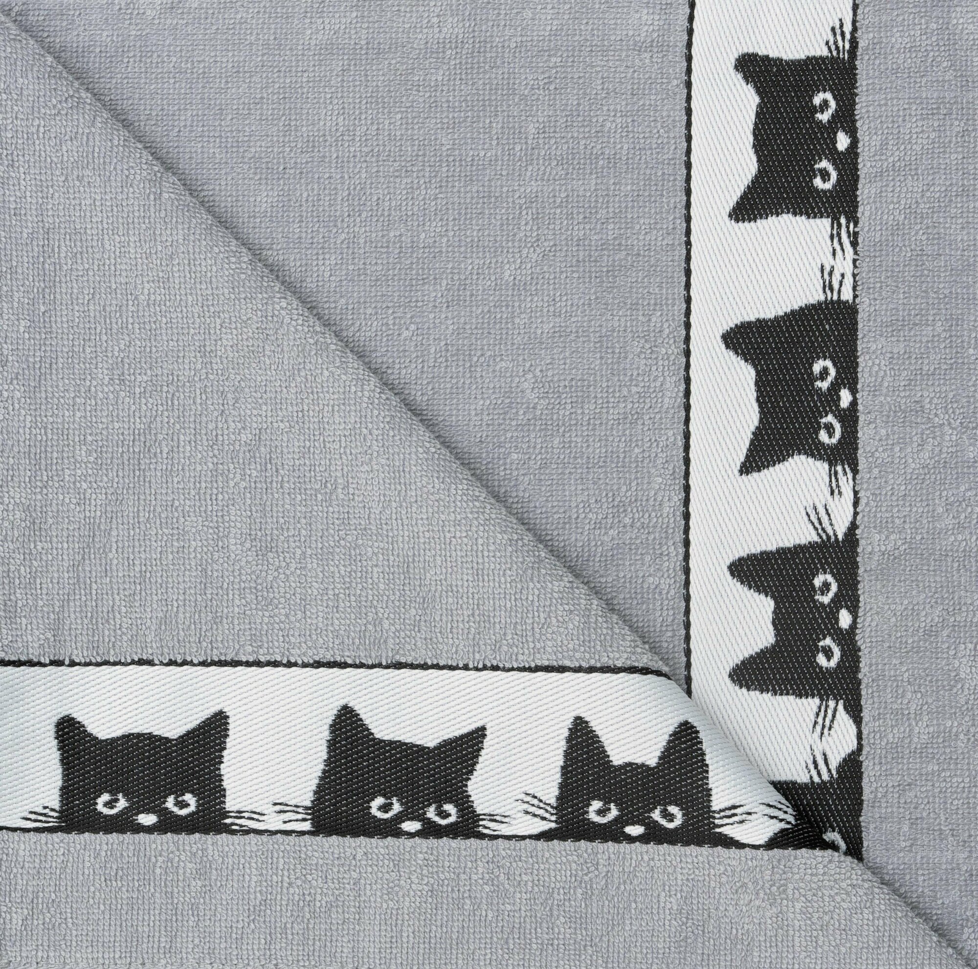 Полотенца махровые кухонные 50х80 см, набор 2 шт, Китчен, котики / серые