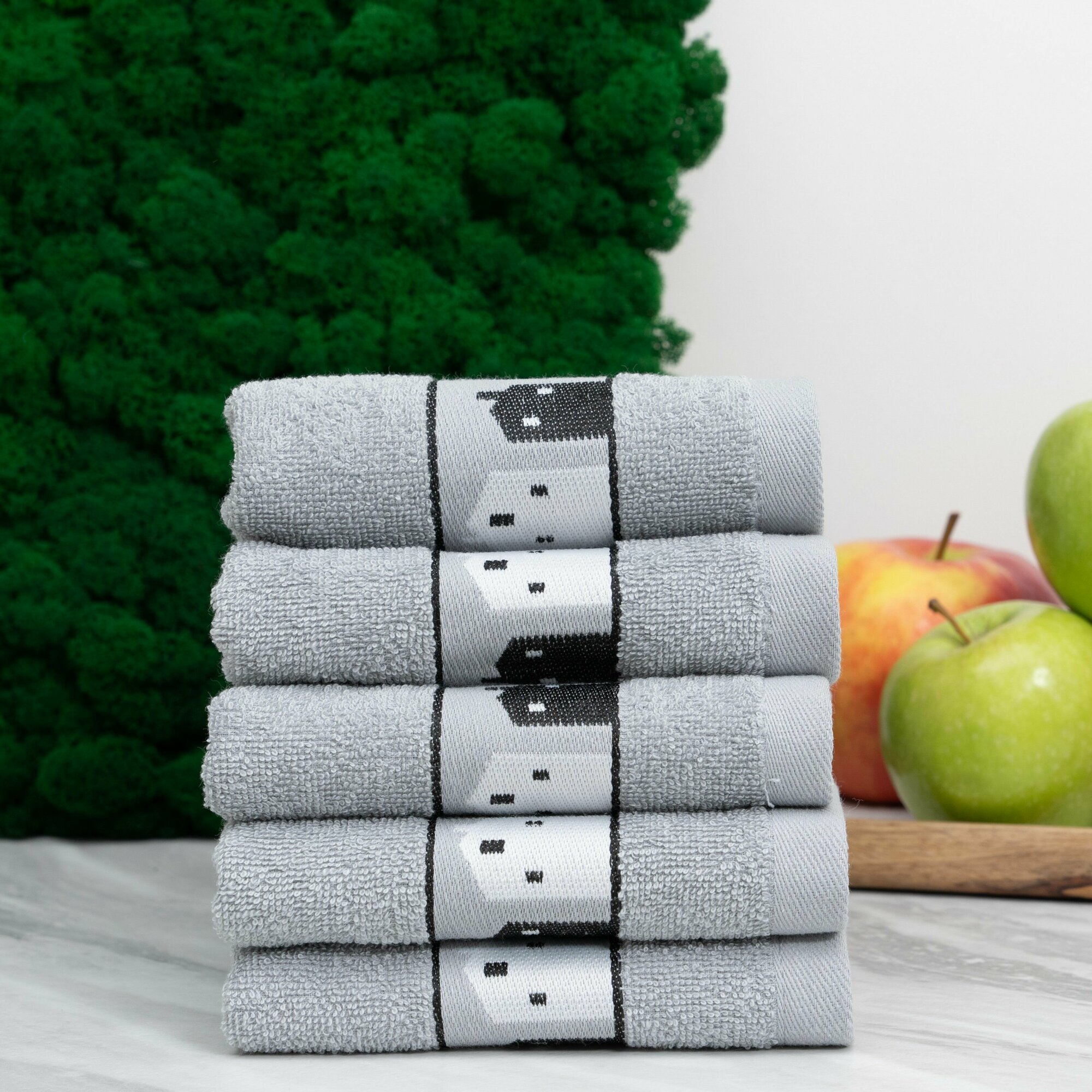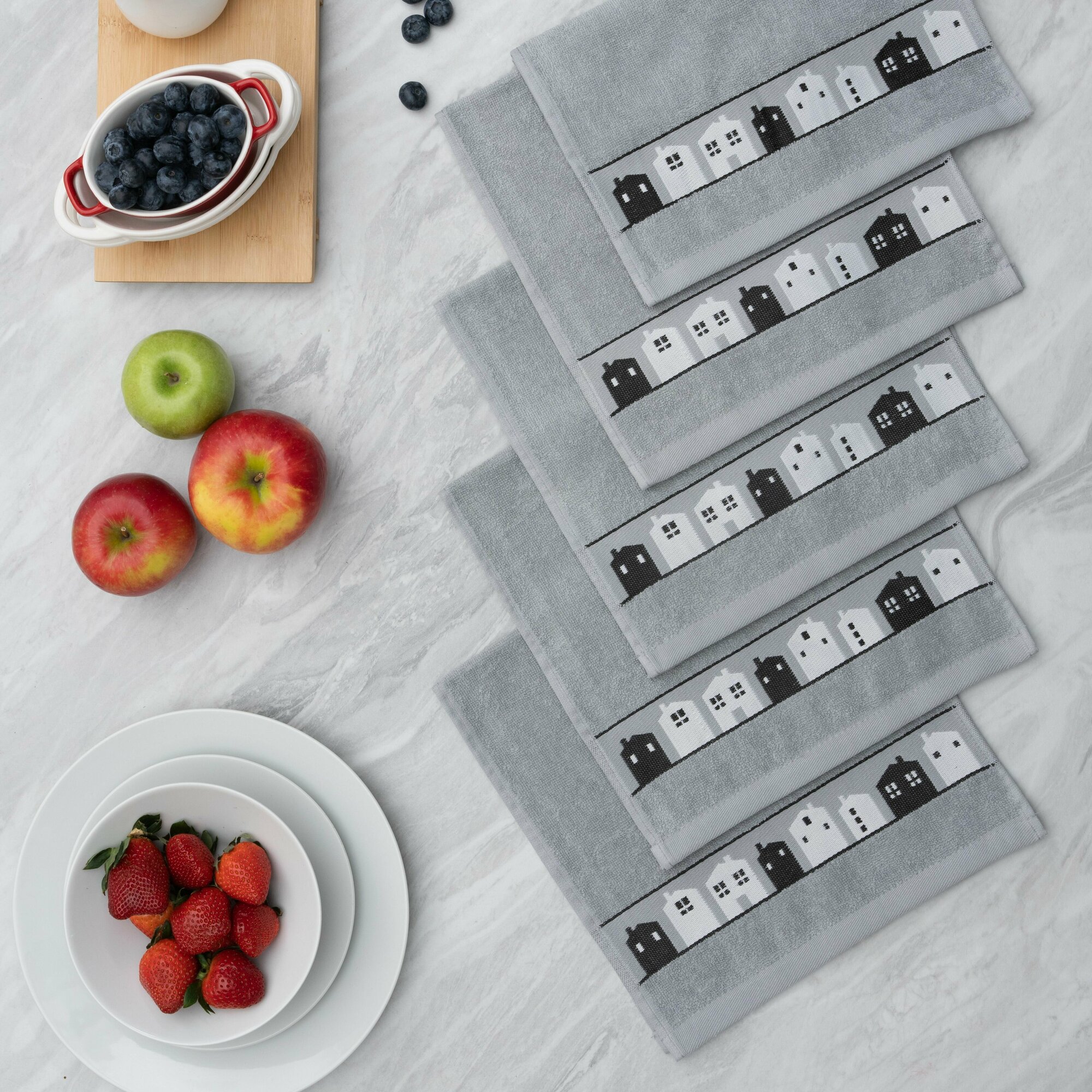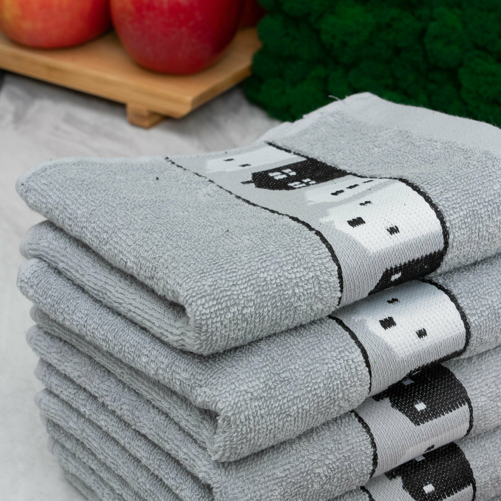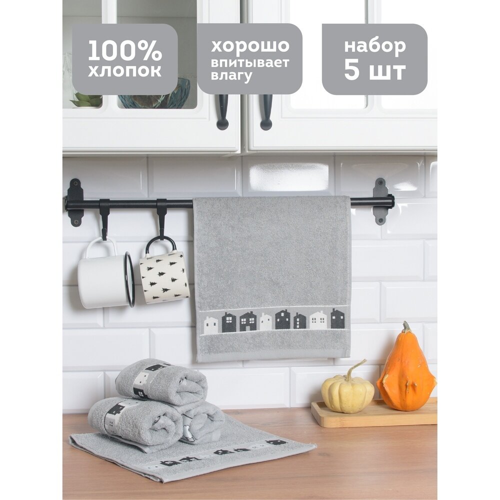 Полотенца махровые кухонные 30х60 см, набор 5 шт, Китчен, городок / серые