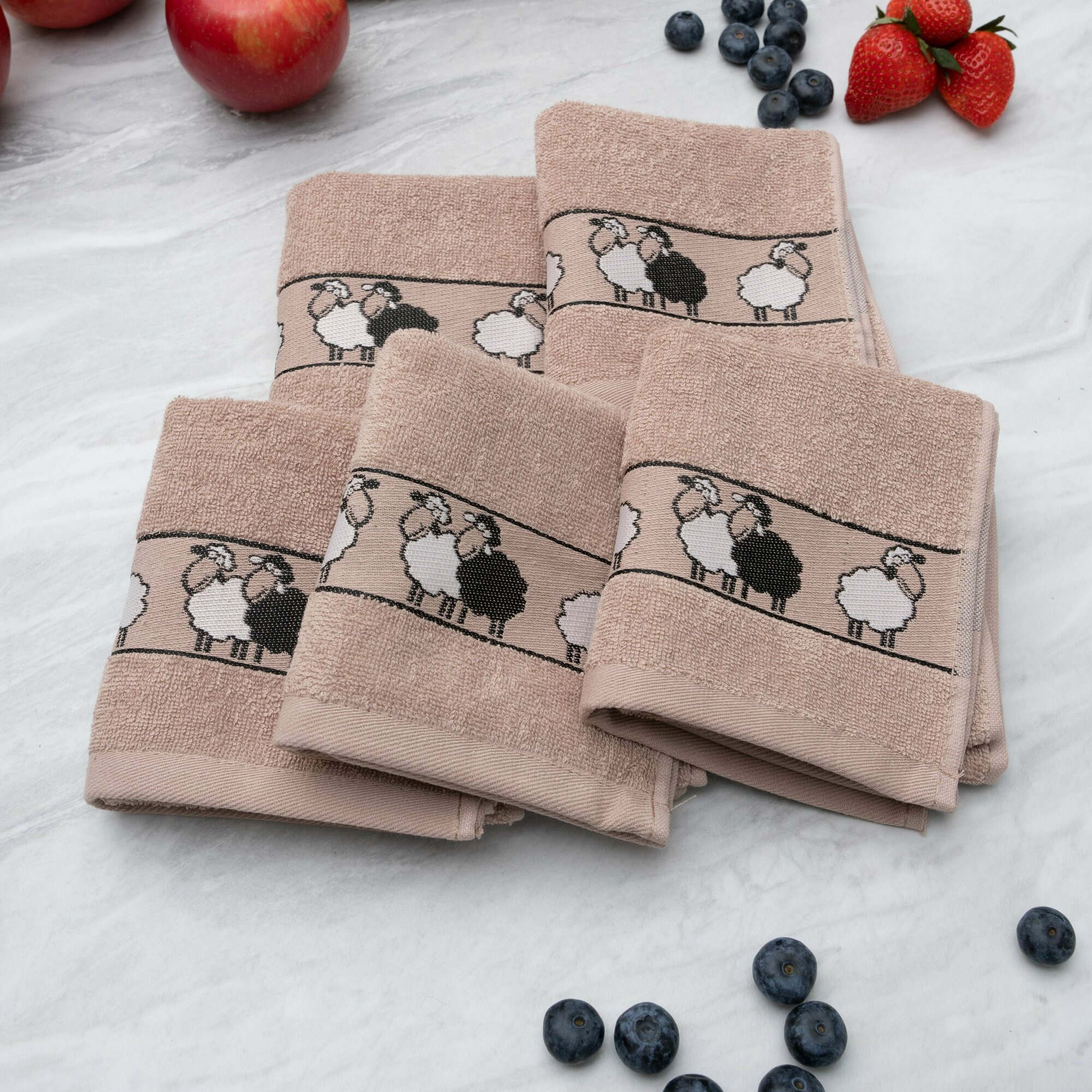 Полотенца махровые кухонные - 5 шт, 30х60 см, Китчен, овечки / серые