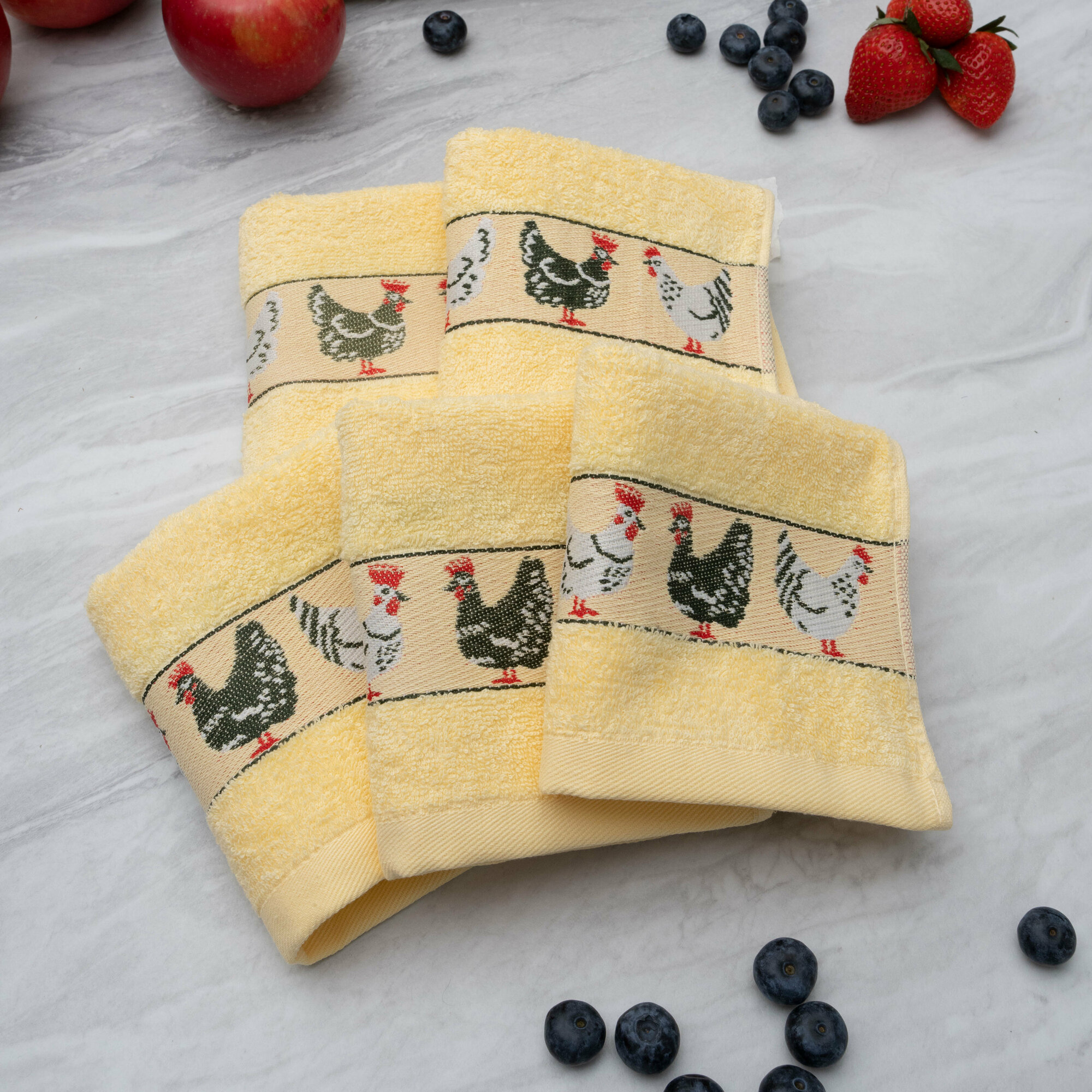Полотенца махровые кухонные, 30х60 см, набор 5 шт, Китчен Курочки, желтые