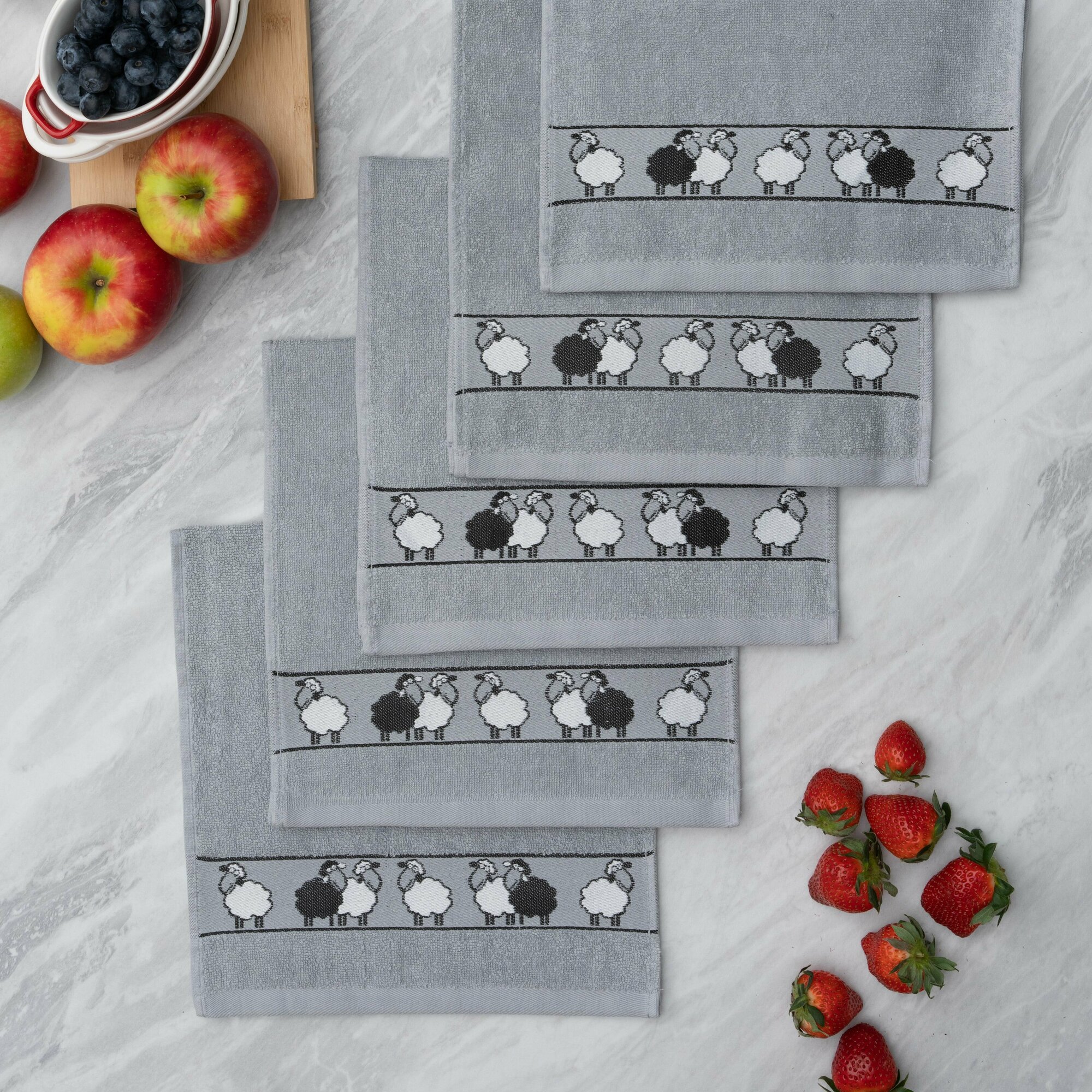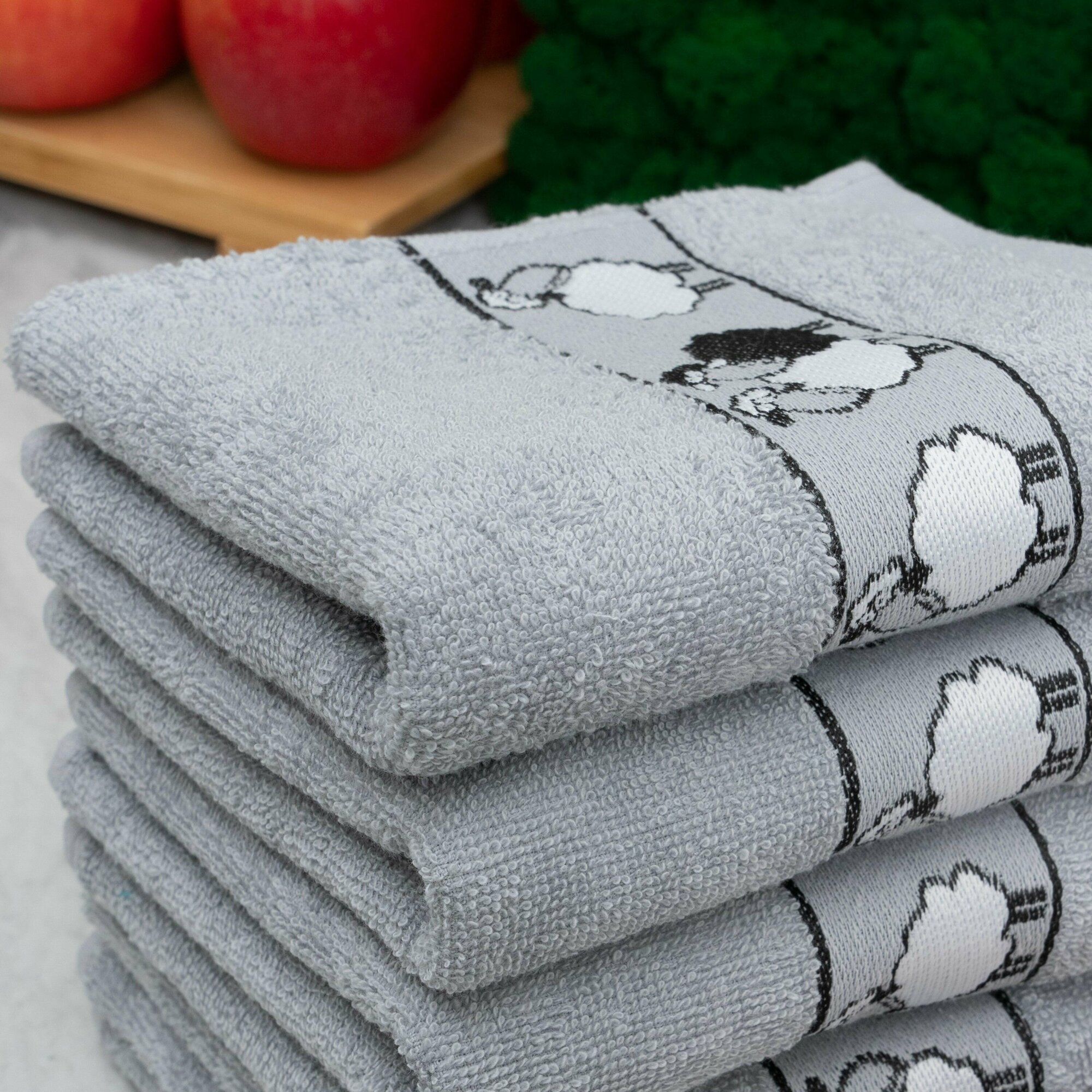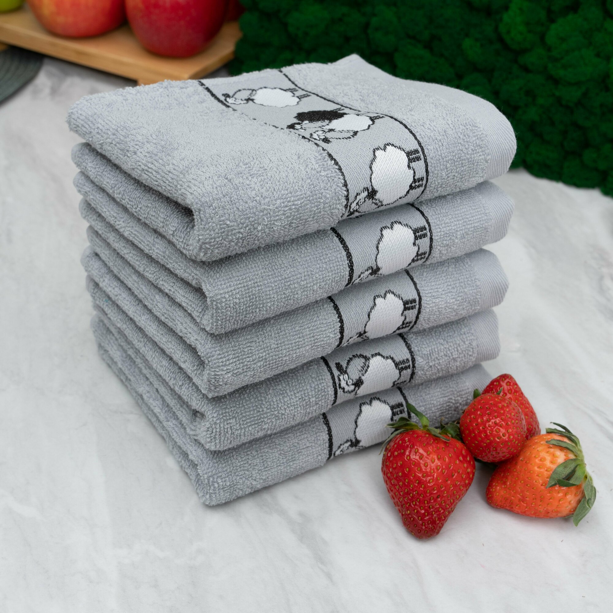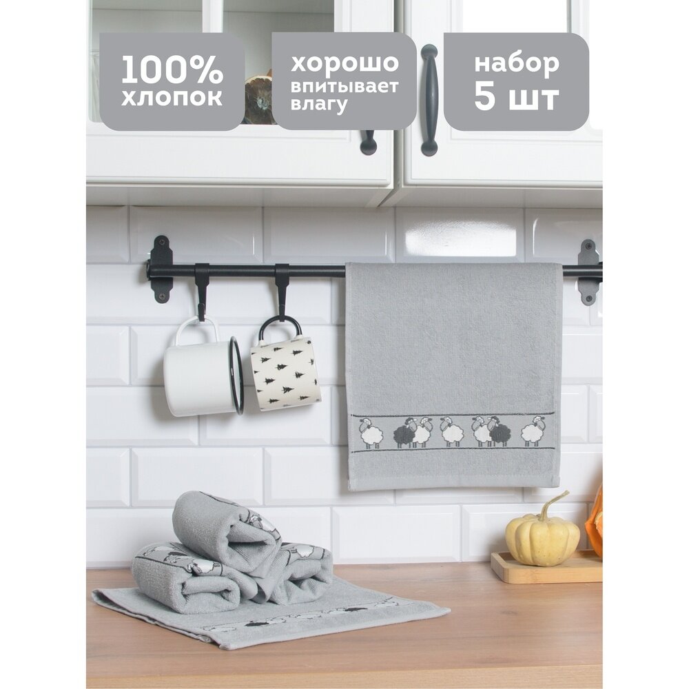 Купить Полотенца махровые кухонные, 30х60 см, набор 5 шт, Китчен Овечки, серые
