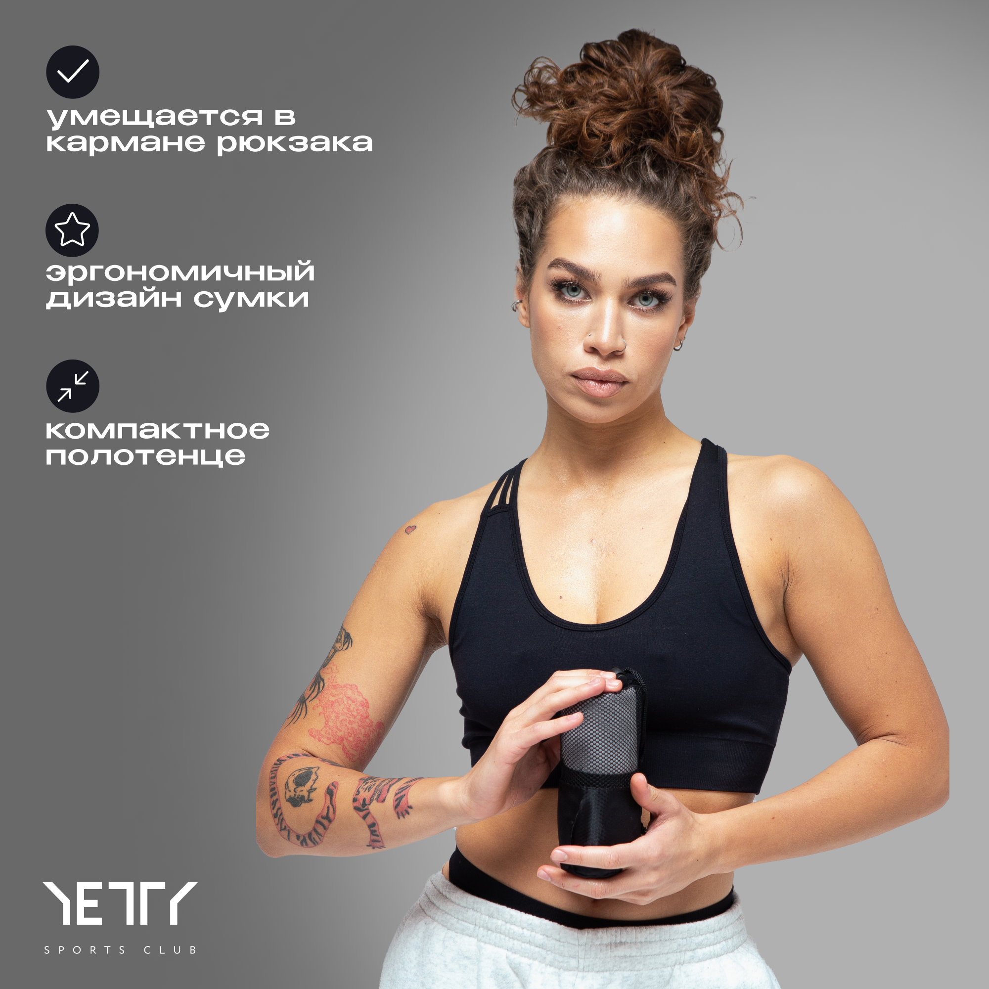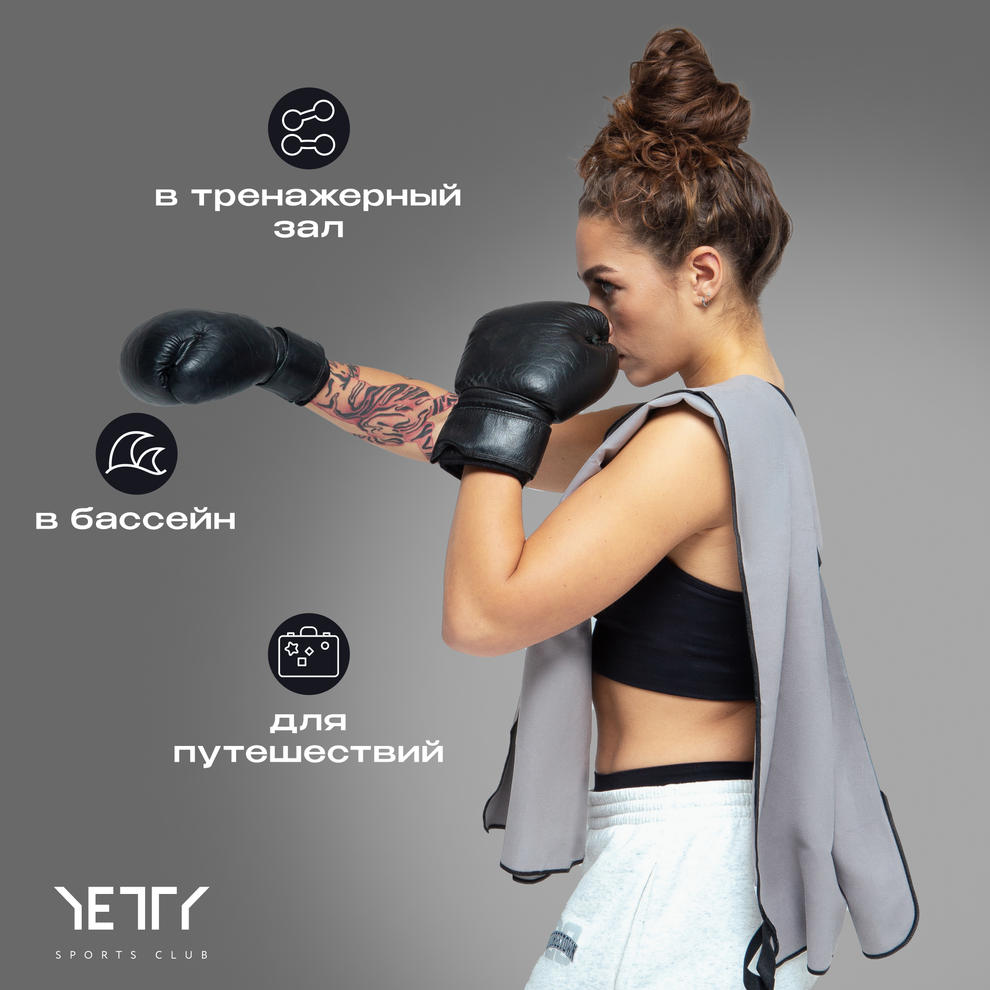 Полотенце спортивное 100*50 см "Серое" интересное: