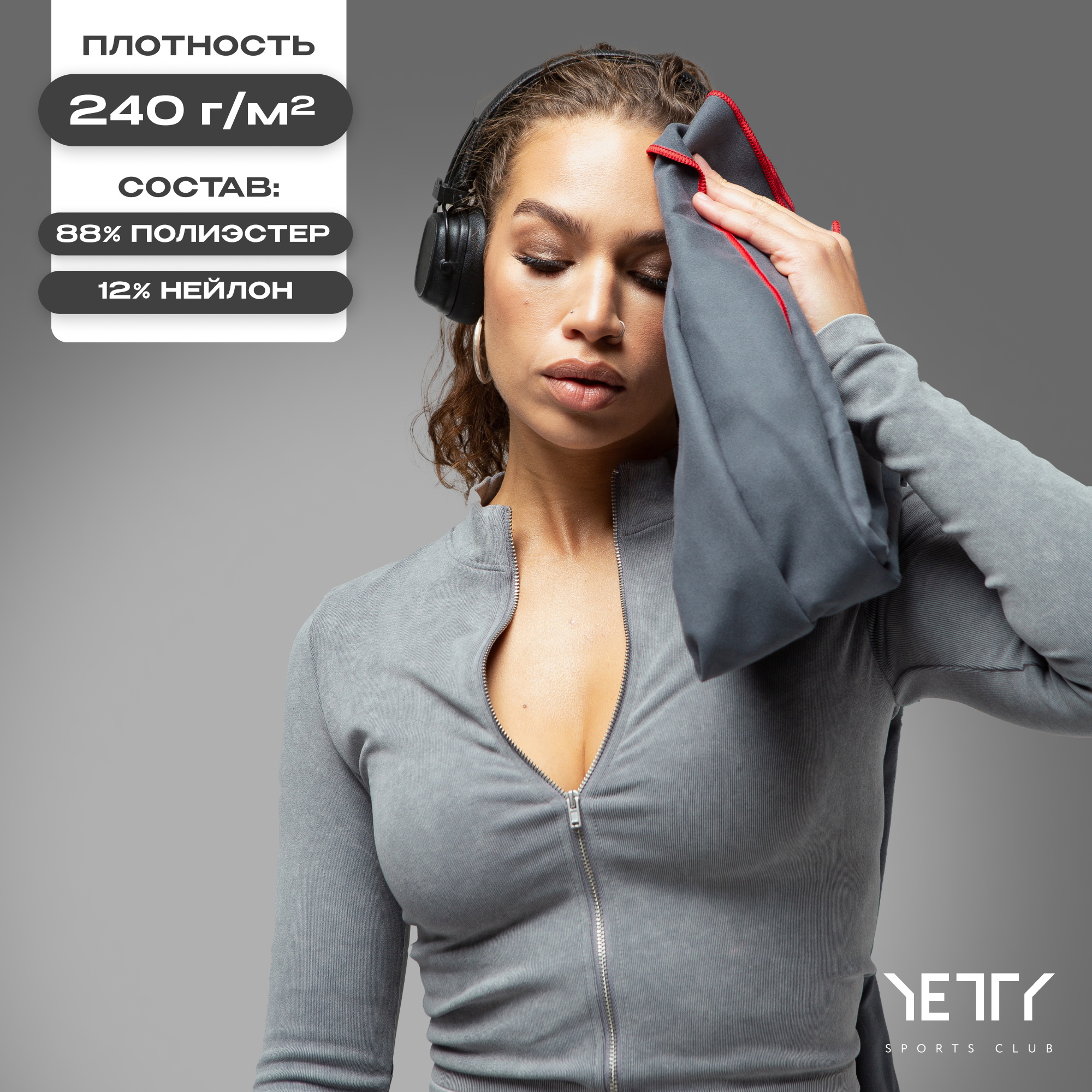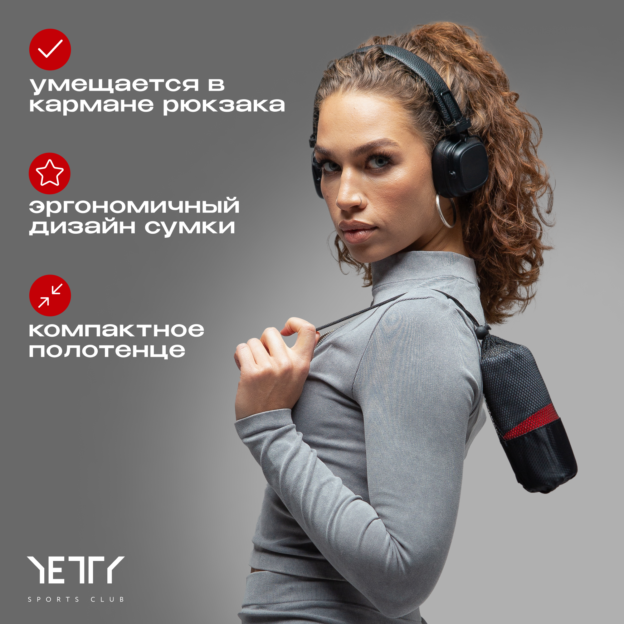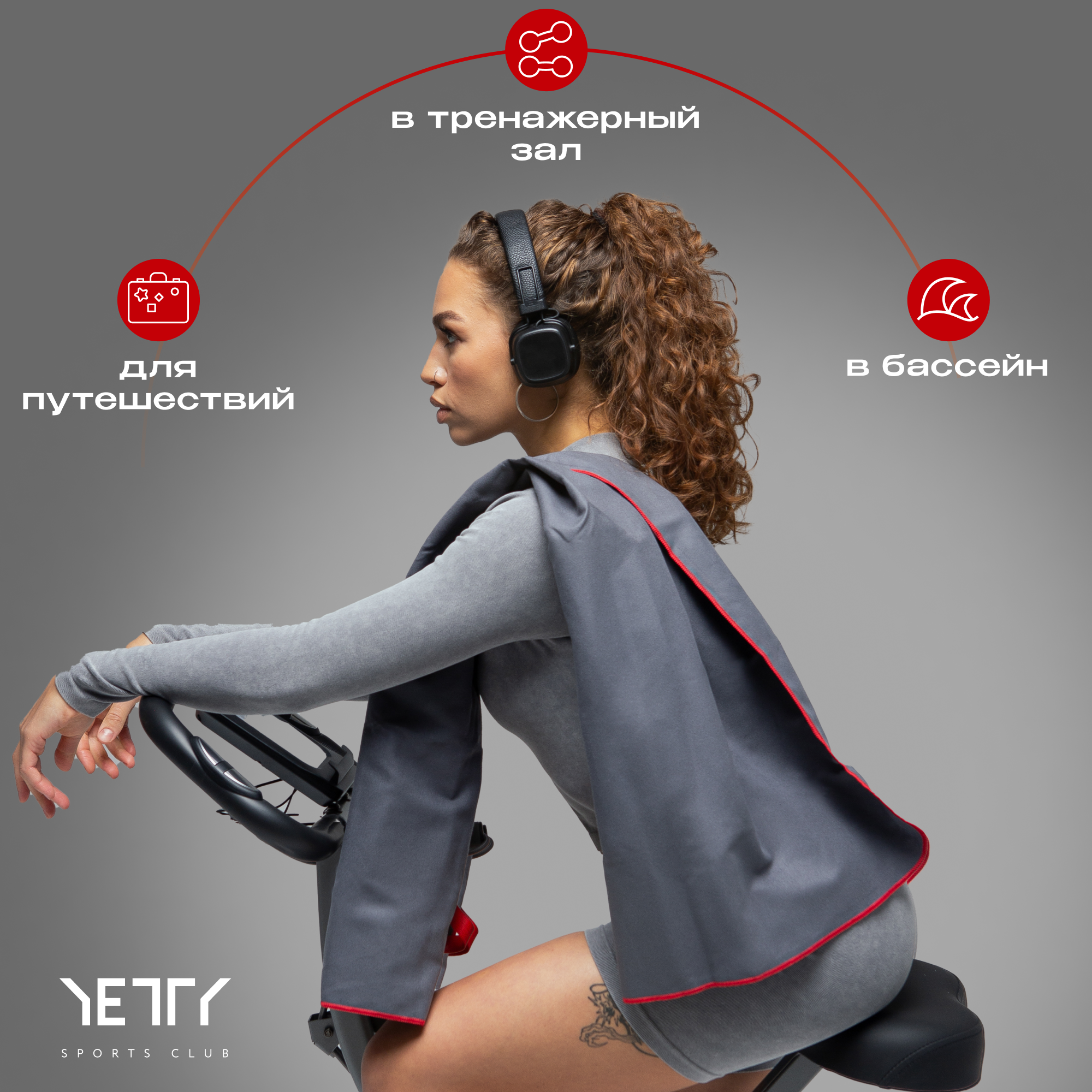 Полотенце спортивное 100*50 см "Серое-красное" интересное: