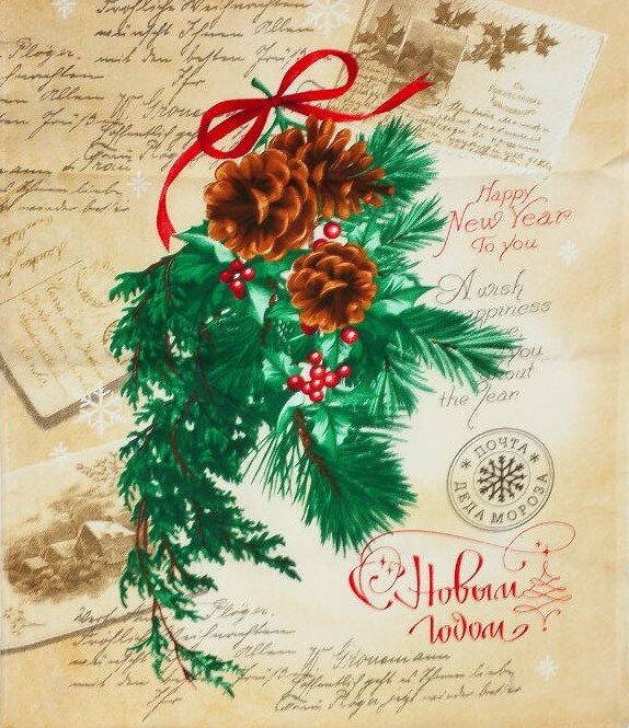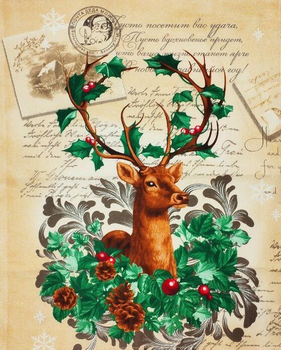Набор кухонных полотенец "Новый год" из рогожки 50x60
