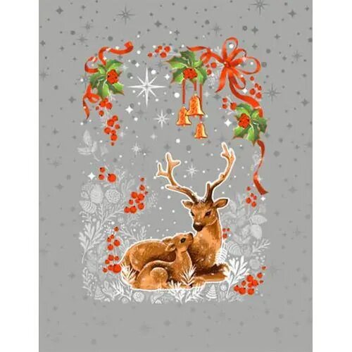 Набор кухонных полотенец "Новый год" из рогожки 50x60, 3 шт, серый с оленями