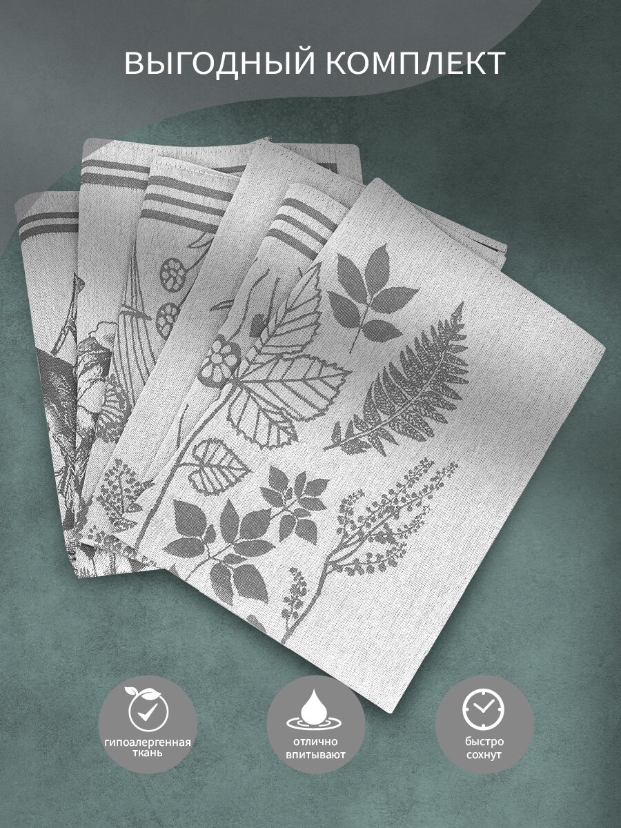 Набор кухонных жаккардовых полотенец Василиса 3 шт 50х70, Цветочная мелодия интересное: