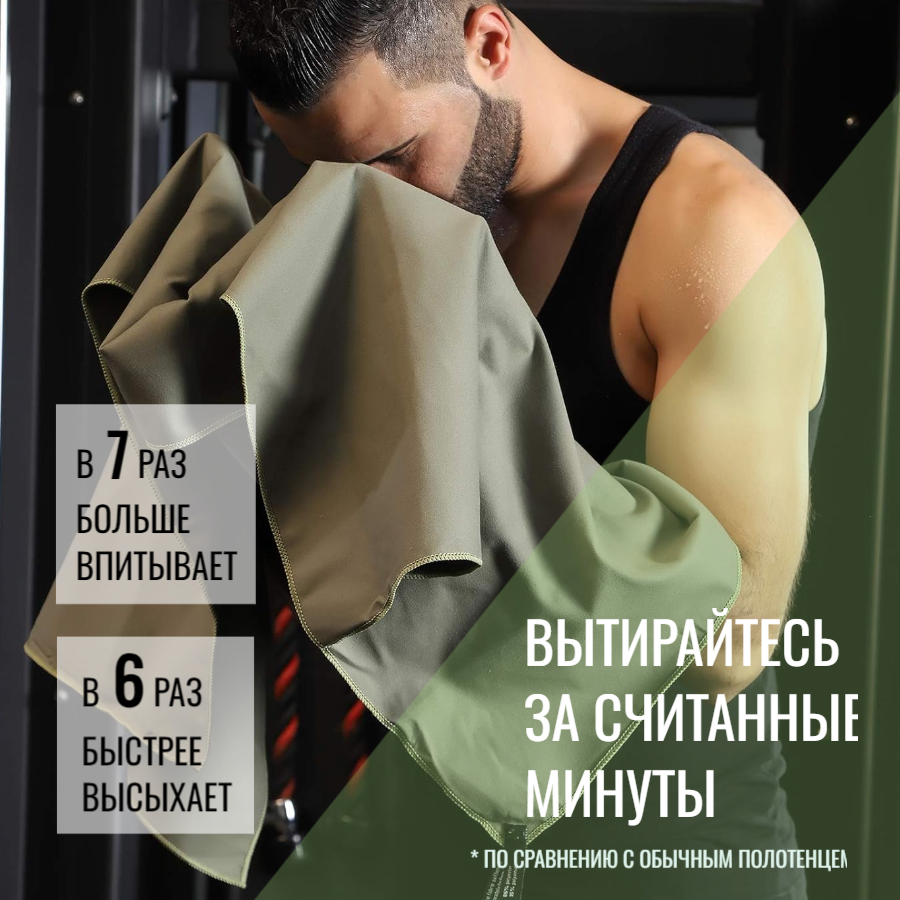 СохранитьПолотенце из микрофибры спортивное пляжное для бассейна и спорта быстросохнущее, зеленое, 60х120 см интересное: