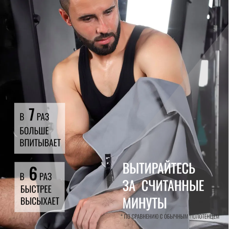 СохранитьПолотенце из микрофибры спортивное пляжное для бассейна и спорта быстросохнущее, серое, 60х120 см интересное: