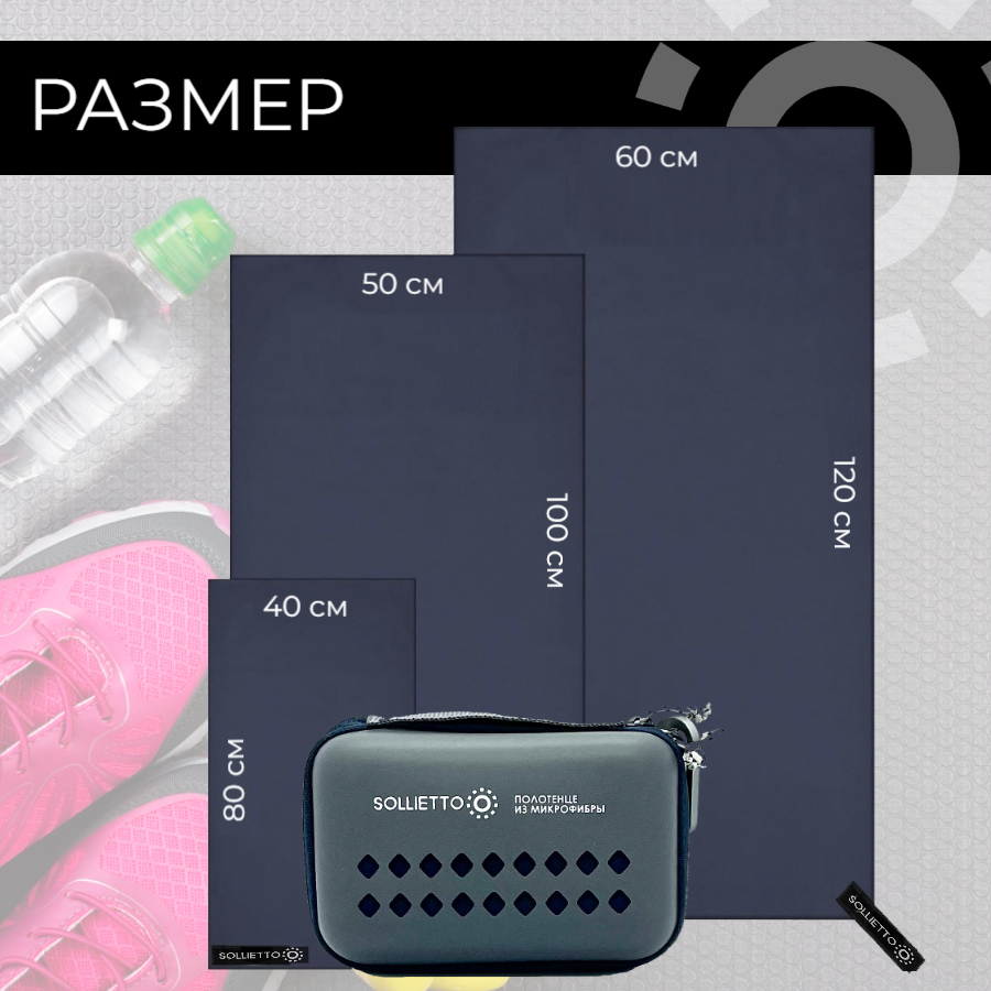 Быстросохнущее полотенце для спорта SOLLIETTO 40×80 см