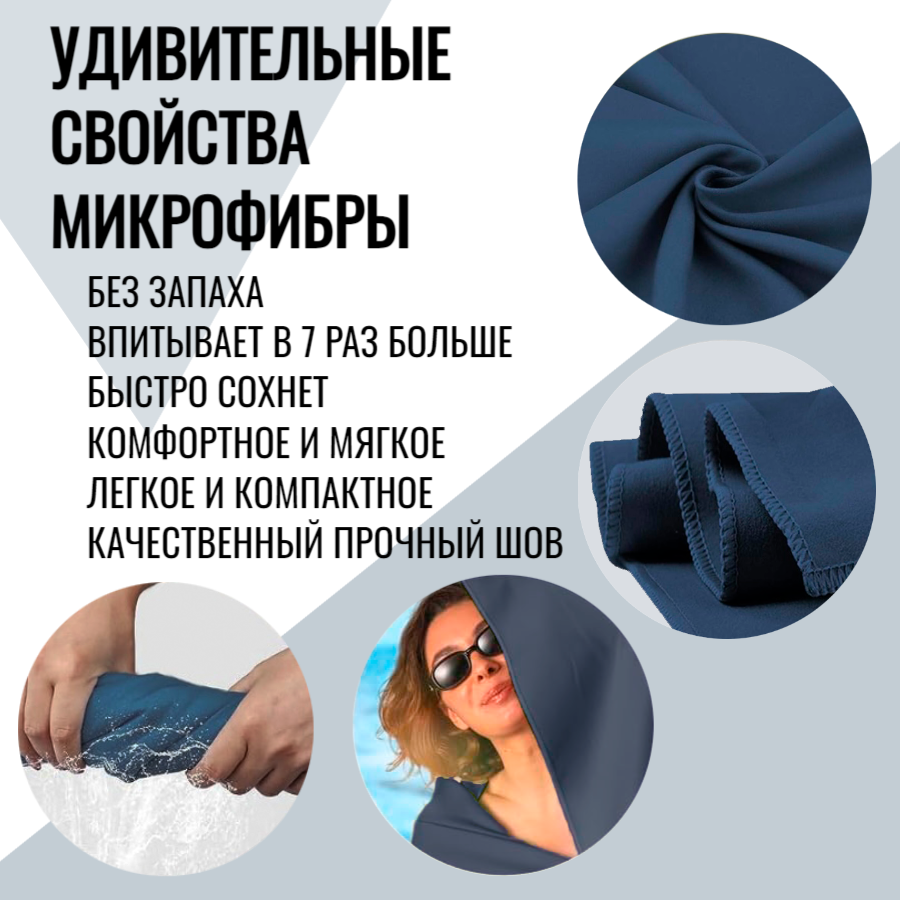 Полотенце из микрофибры спортивное пляжное для бассейна и спорта быстросохнущее, синее, 50х100 см