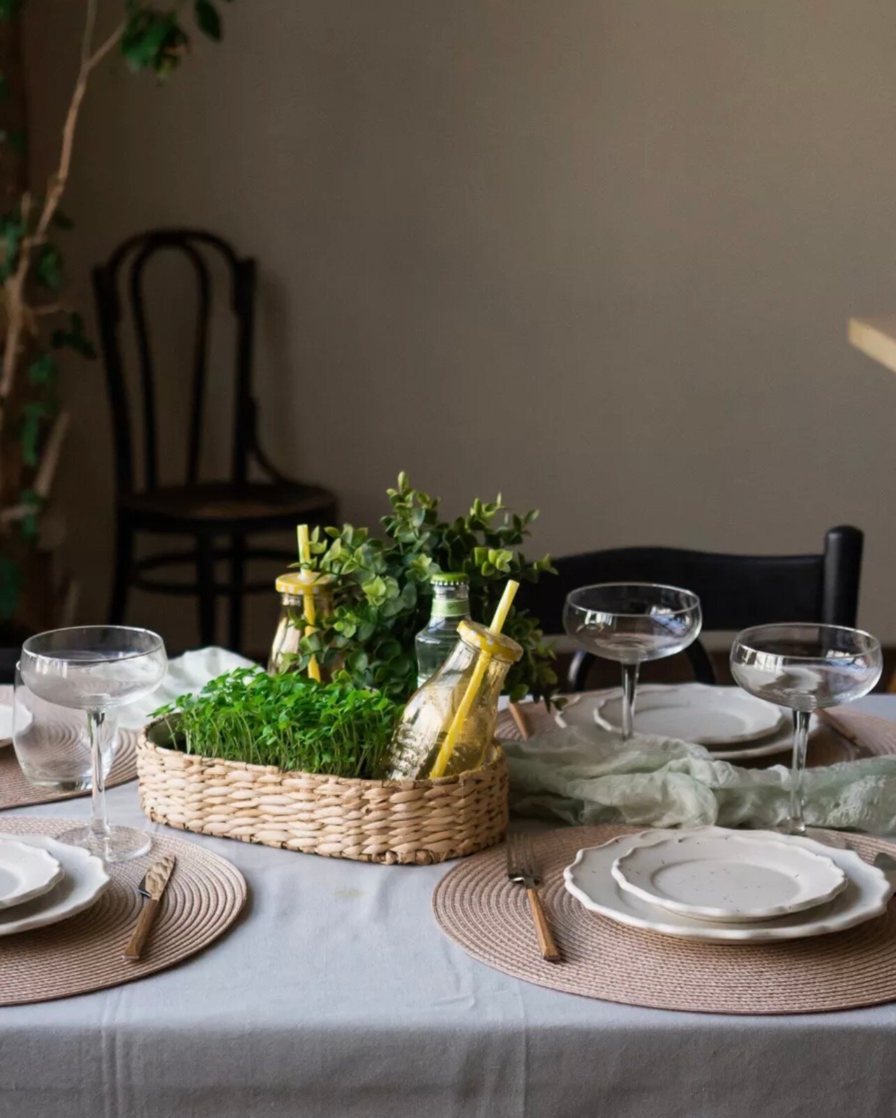 Плетеные салфетки на стол «Charmistry» 2 шт, плейсматы зеленые 38 см