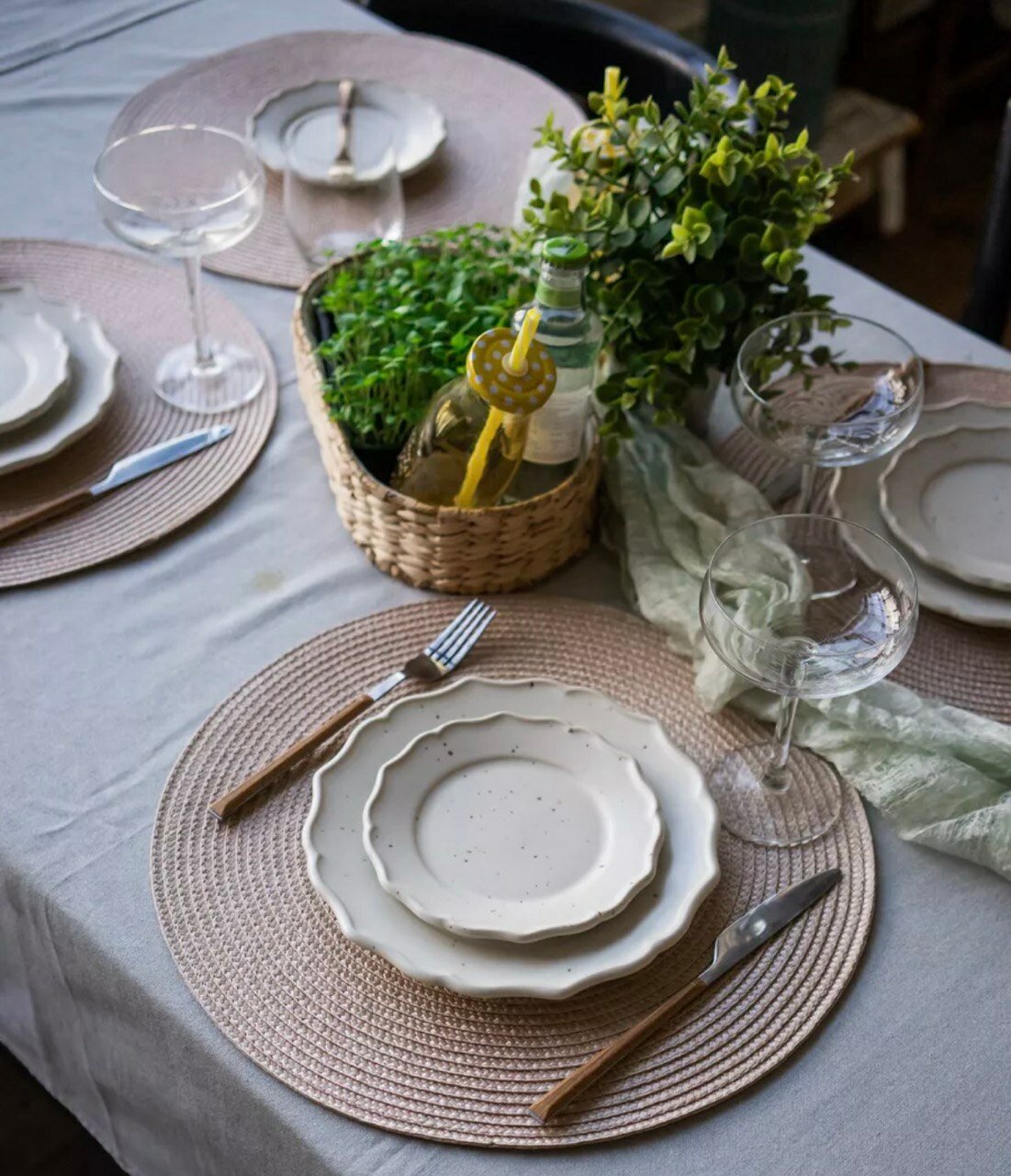 Плетеные салфетки на стол «Charmistry», 38см, 2шт, плейсматы зеленые