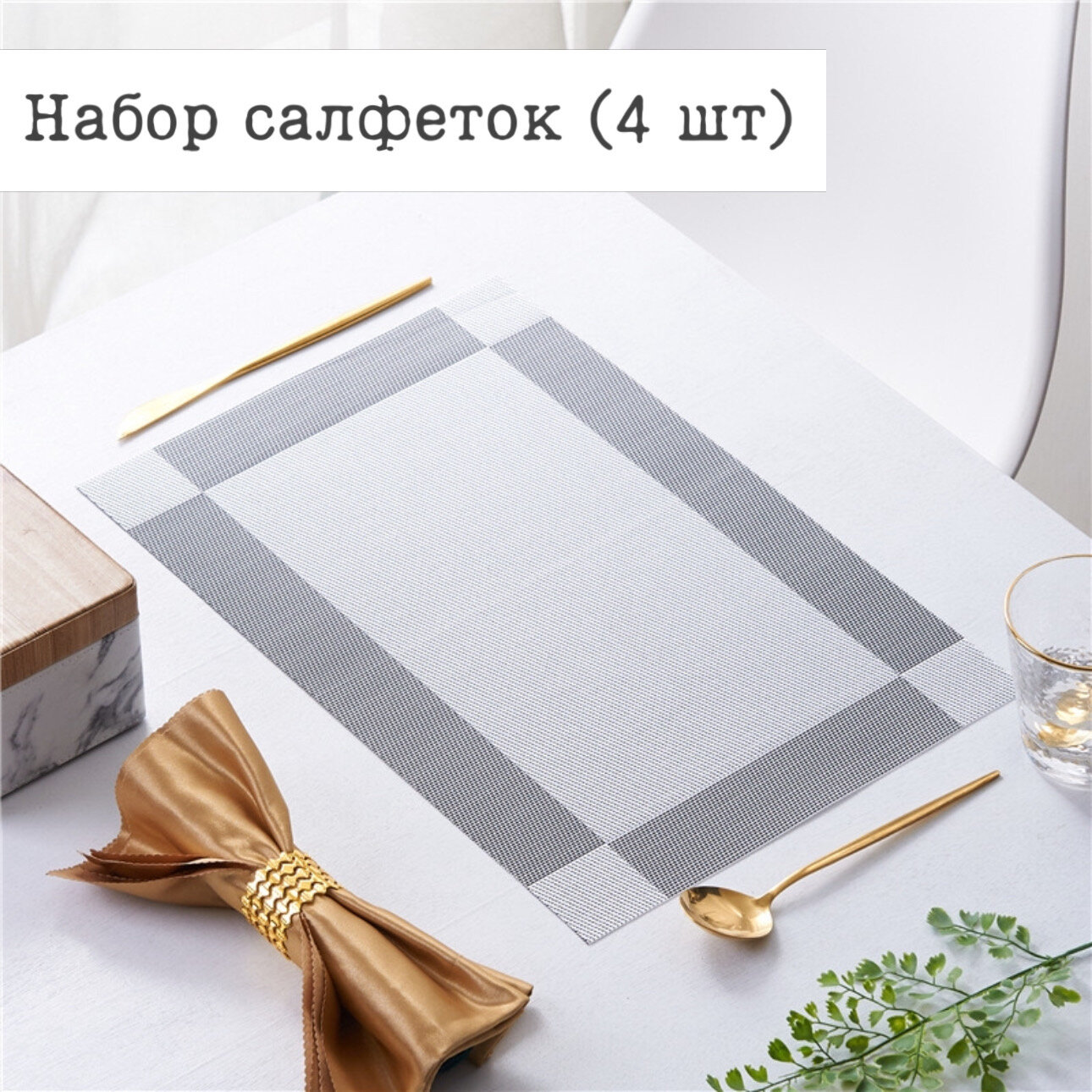 Плейсматы прямоугольные сервировочные на стол/ Подстановочные салфетки/ Сервировочные салфетки/ Салфетка на стол, набор 4 шт