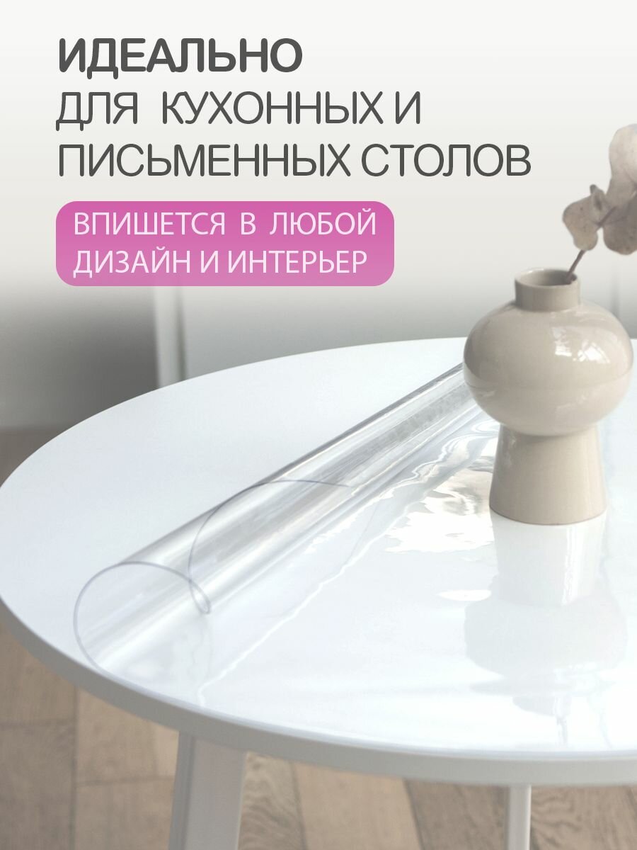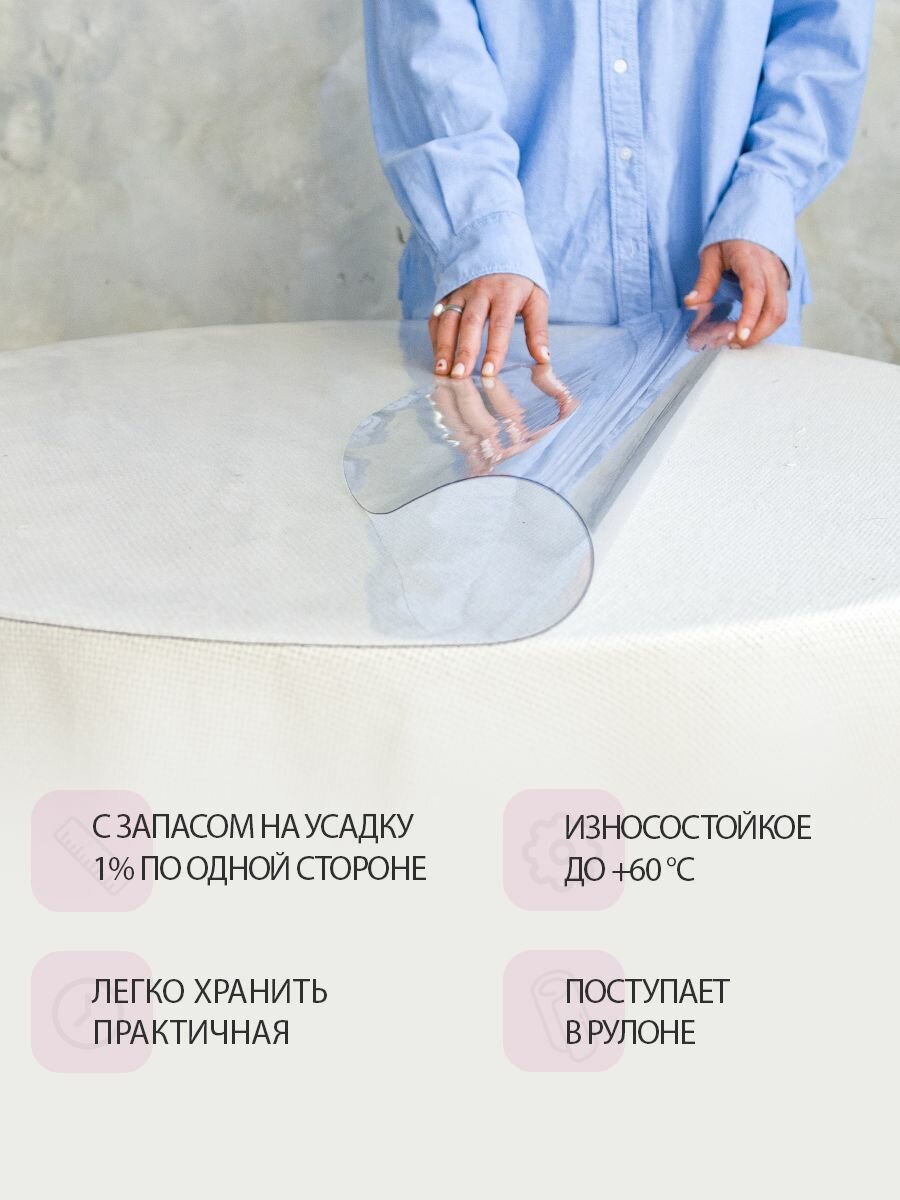 Круглая скатерть (гибкое/мягкое стекло) CrystalDesk. Толщина 0.7 мм. ПВХ скатерть. D 140 см. Прозрачная. На круглый стол.