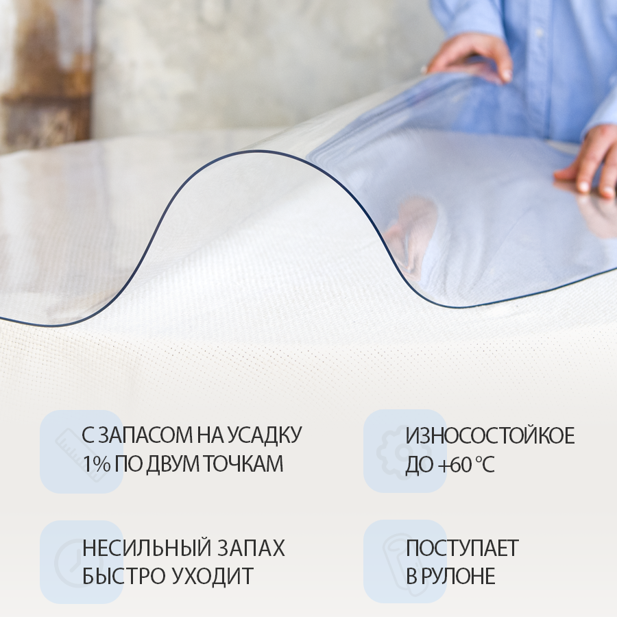 Скатерть прозрачная 140 x 190 см, толщина 0,2 мм (200 мк) / мягкое-гибкое стекло ПВХ