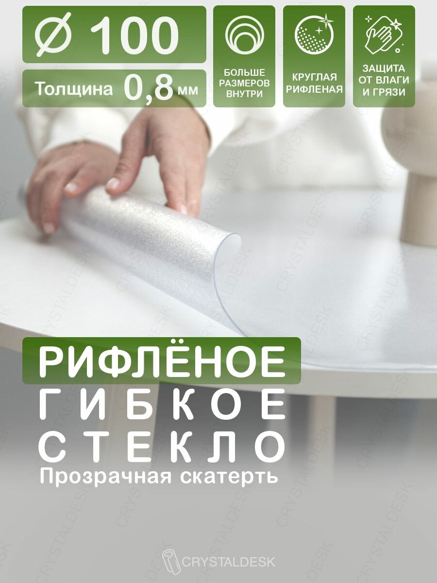 Круглая рифленая скатерть (гибкое/мягкое стекло). Толщина 1,5 мм. CrystalDesk. ПВХ скатерть. 100х100 см. Прозрачная. На круглый стол.