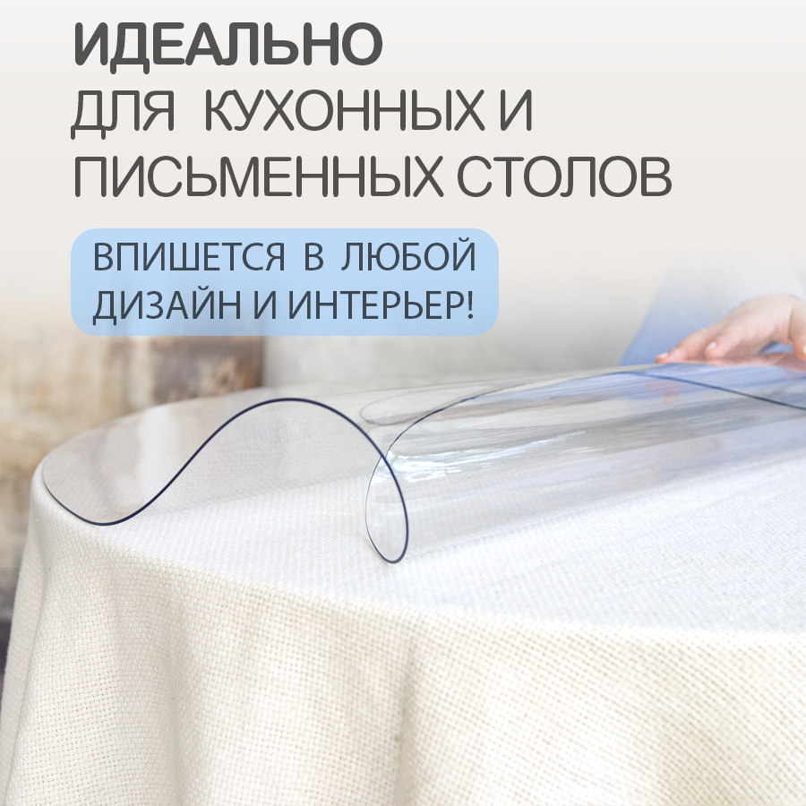 Скатерть прозрачная 140 x 190 см, толщина 0,2 мм (200 мк) / мягкое-гибкое стекло ПВХ