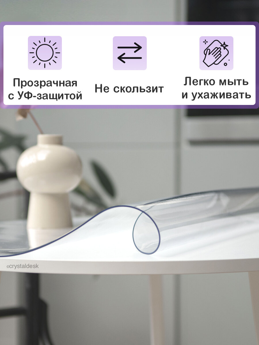 СохранитьКруглая скатерть (гибкое/мягкое стекло) CrystalDesk. Толщина 0.8 мм. ПВХ скатерть. 95х95 см. Прозрачная. На круглый стол. интересное: