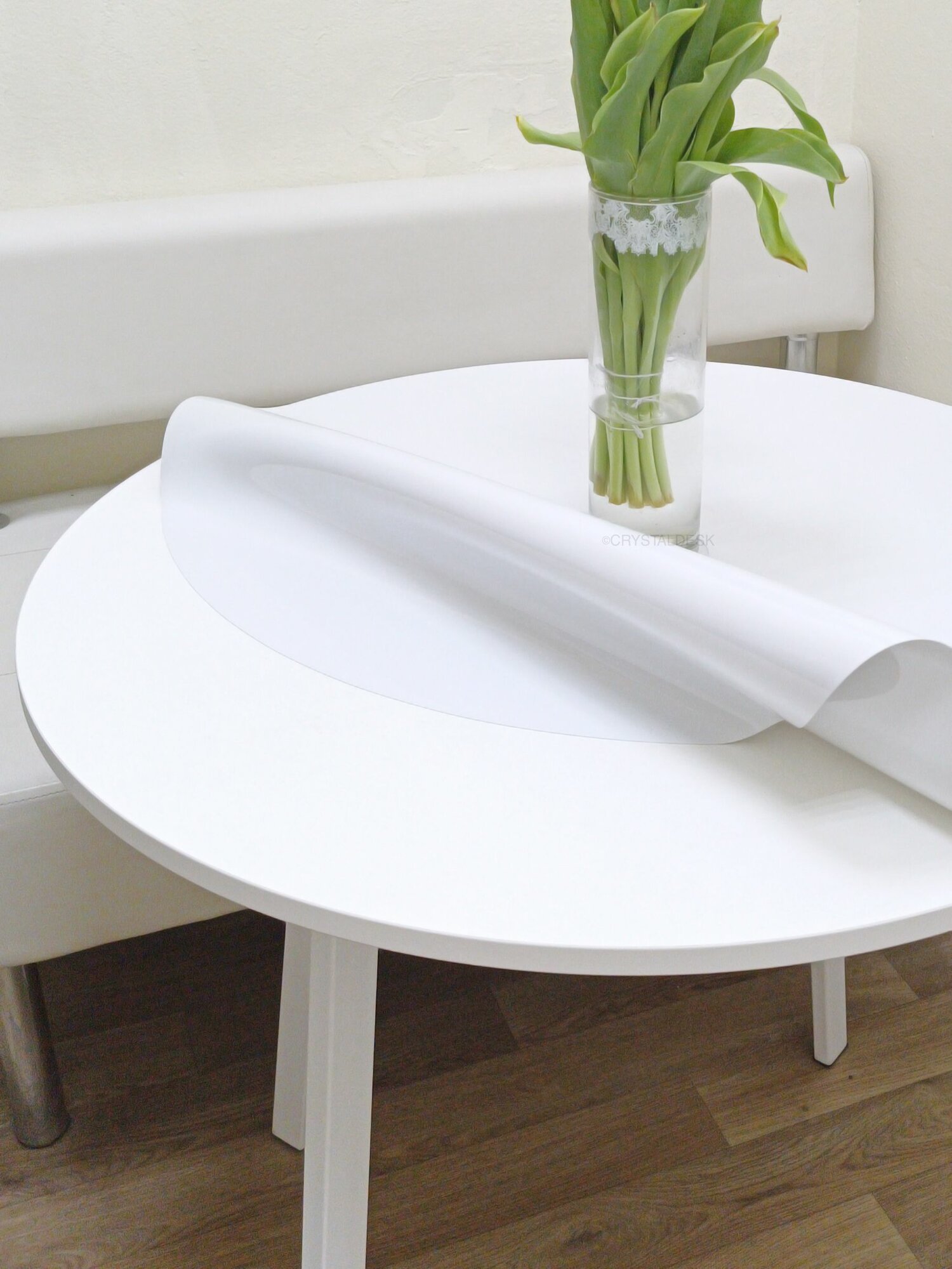Белая матовая скатерть на круглый стол D 80 см. Жидкое гибкое стекло 1.5мм. Белая клеенка ПВХ.