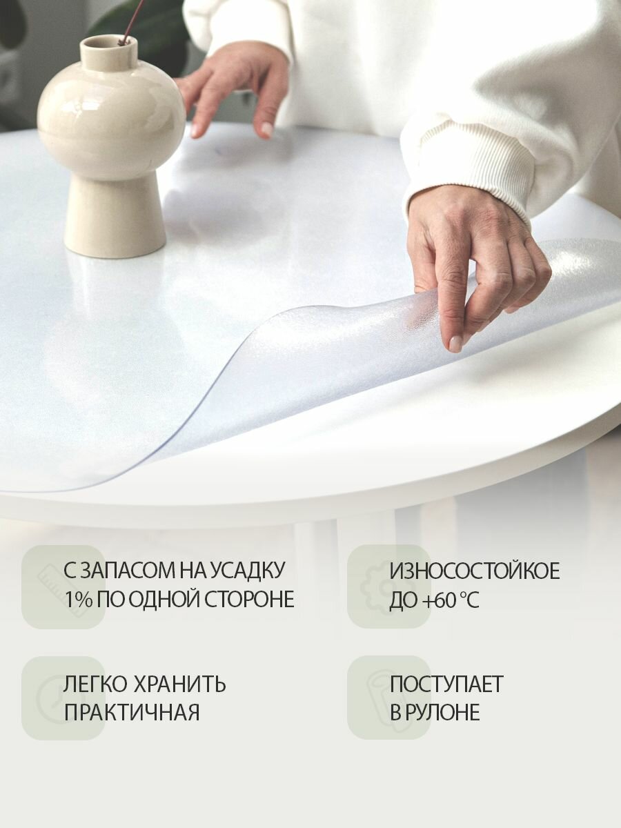 Круглая скатерть (гибкое/мягкое стекло) CrystalDesk. Толщина 0.7 мм. ПВХ скатерть. D 140 см. Прозрачная. На круглый стол.