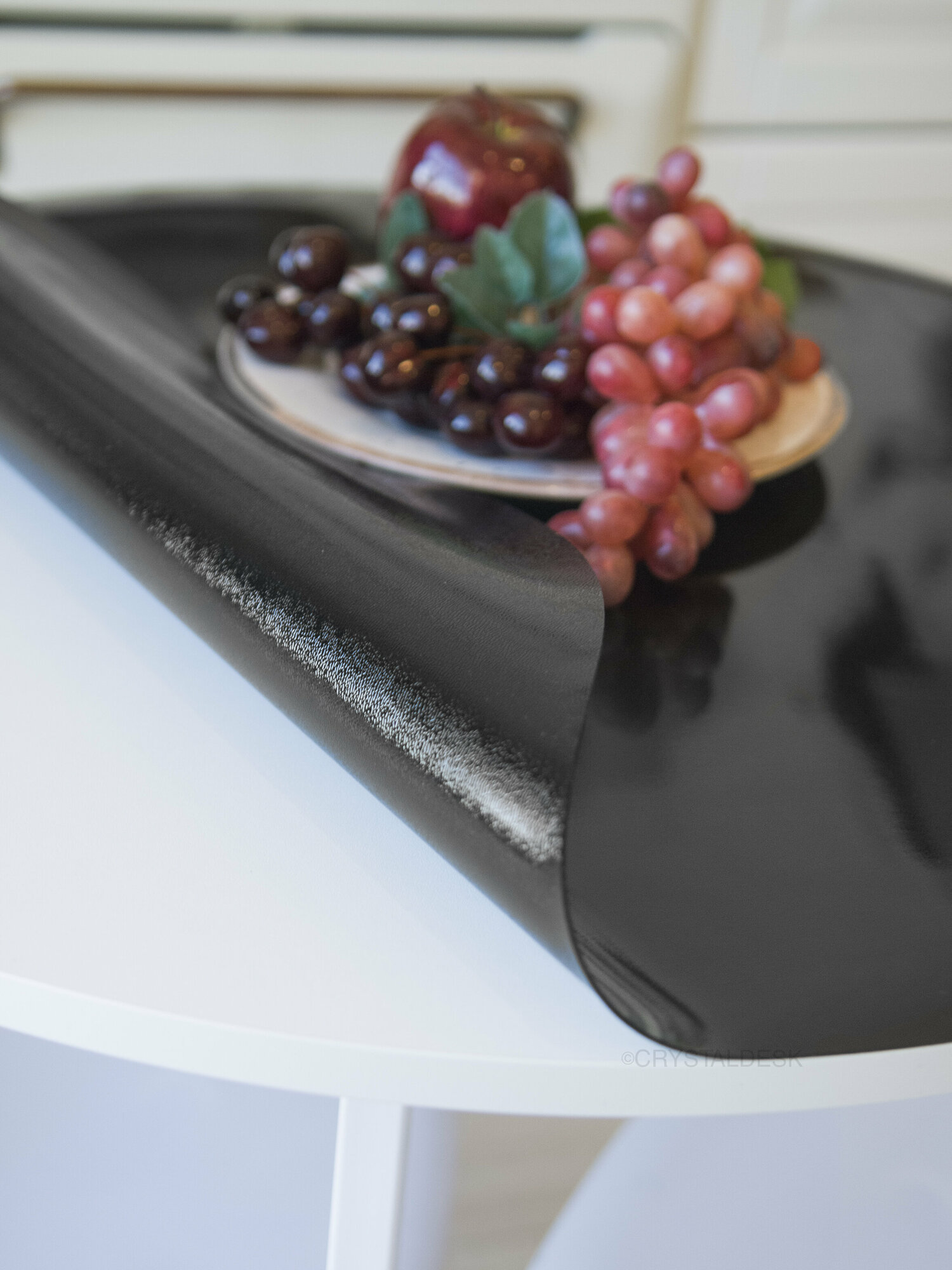 Купить Рифленая черная тонированная скатерть на круглый стол CrystalDesk D 50 см. Жидкое гибкое стекло 1.5мм. Чёрная клеенка ПВХ.