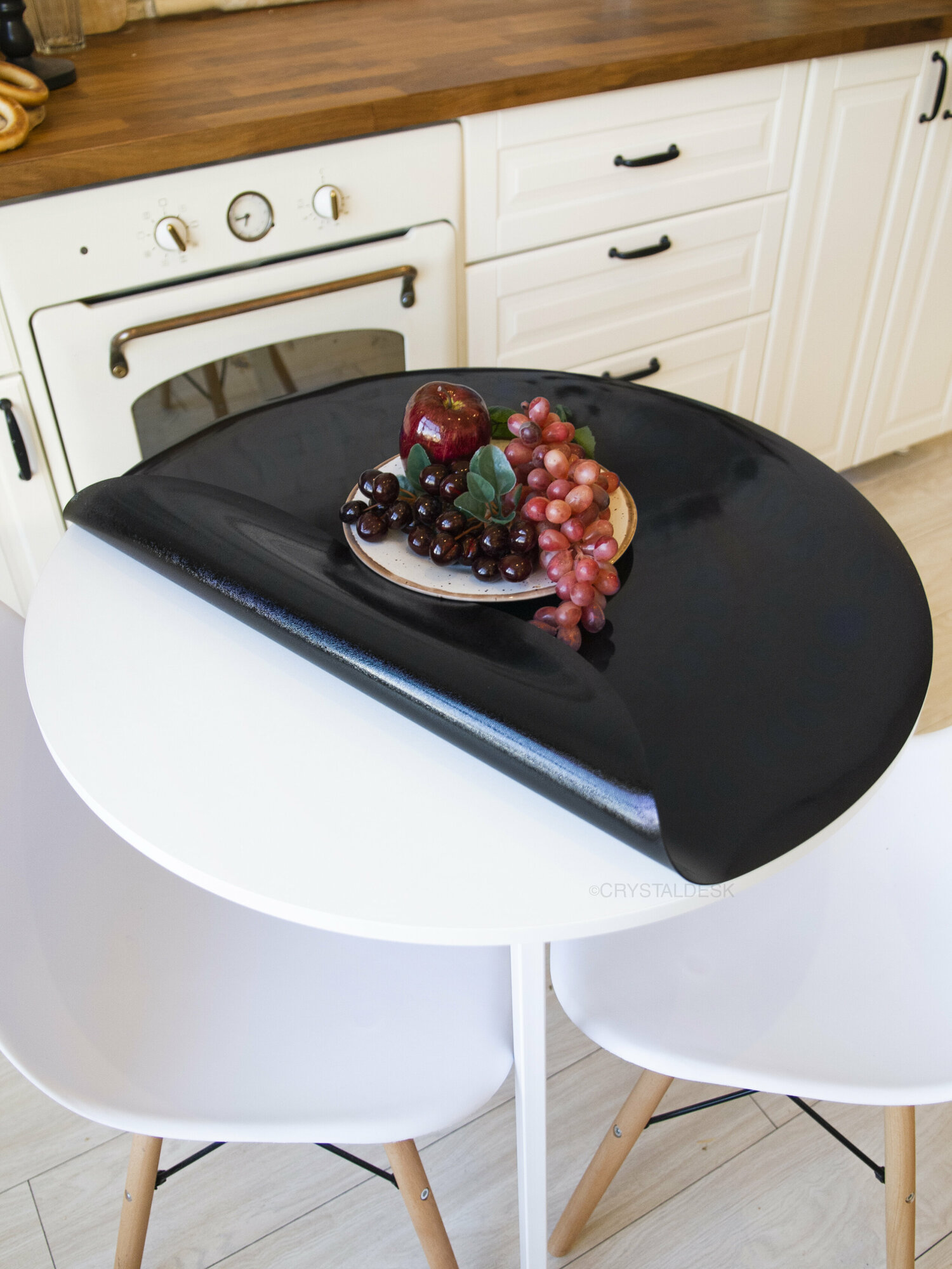 Черная скатерть CrystalDesk на круглый стол D 70 см. Жидкое гибкое стекло 0.8мм. Клеенка ПВХ.