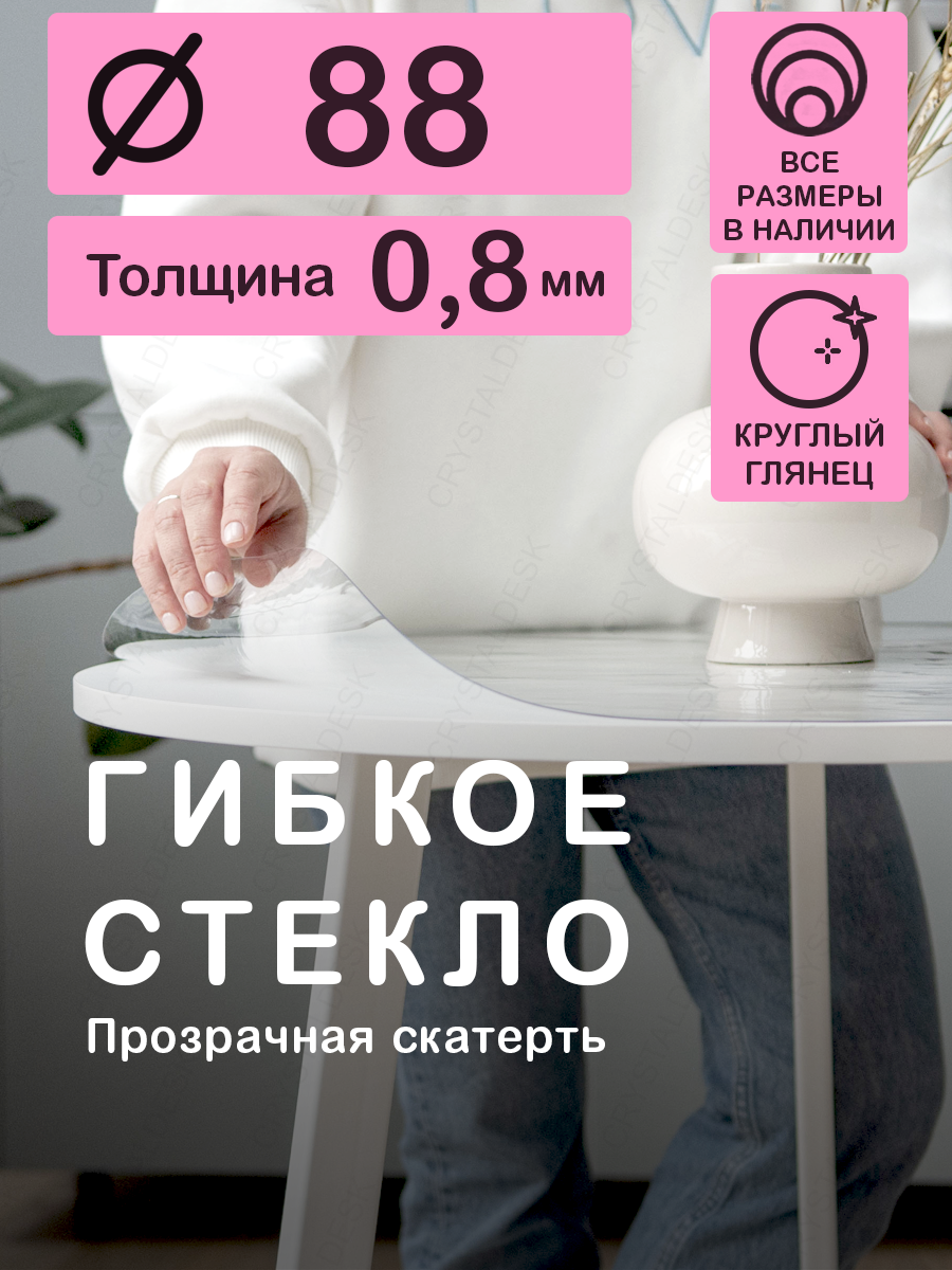 СохранитьКруглая скатерть (гибкое/мягкое стекло) CrystalDesk. Толщина 0.8 мм. ПВХ скатерть. 88х88 см. Прозрачная. На круглый стол. интересное: