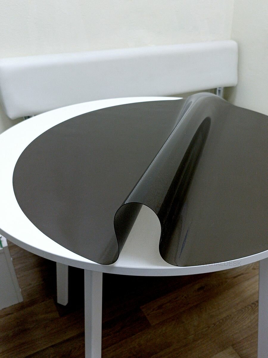 Рифленая черная тонированная скатерть на круглый стол CrystalDesk D 105 см. Жидкое гибкое стекло 1.5мм. Чёрная клеенка ПВХ.