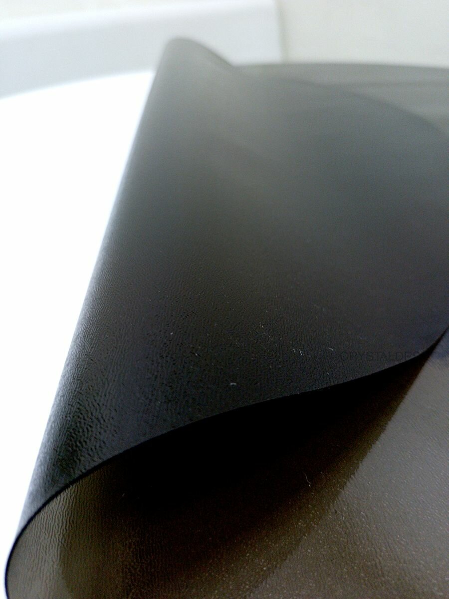 Рифленая черная скатерть CrystalDesk на круглый стол D 60 см. Жидкое гибкое стекло 0.8мм. Тонированная клеенка ПВХ.