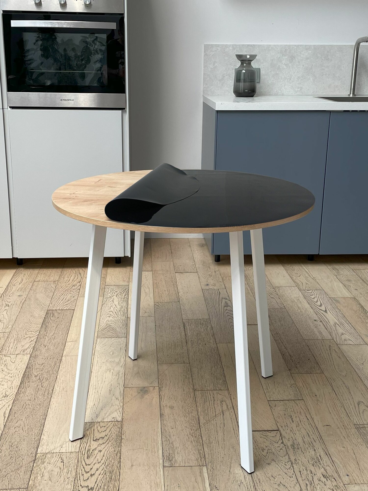 Рифленая черная тонированная скатерть на круглый стол CrystalDesk D 80 см. Жидкое гибкое стекло 1.5мм. Чёрная клеенка ПВХ.