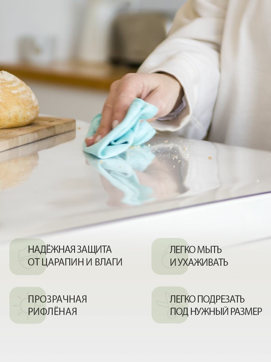 СохранитьРифлёная скатерть на круглый стол D 75 см. Жидкое гибкое стекло 0.8мм. Прозрачная клеенка ПВХ. интересное: