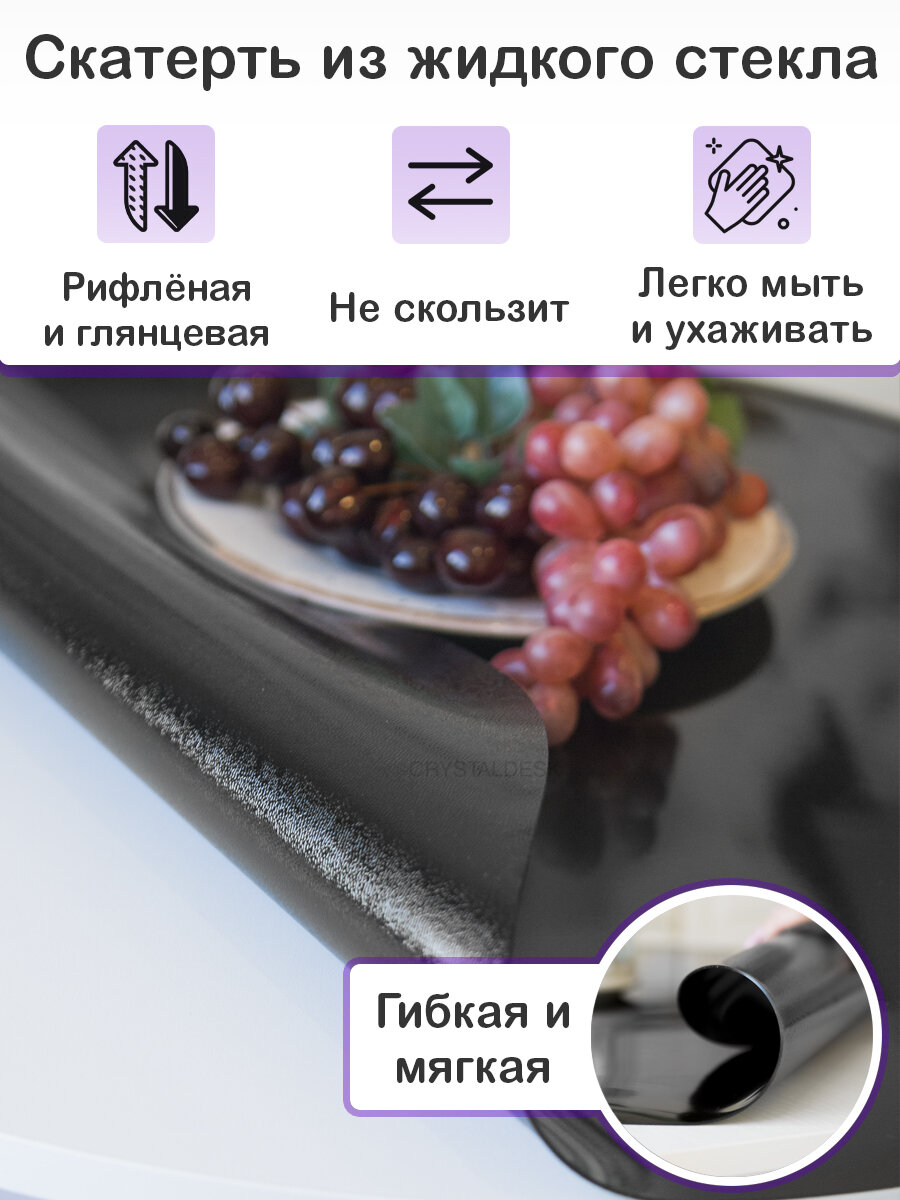 СохранитьРифленая черная тонированная скатерть на круглый стол CrystalDesk D 112 см. Жидкое гибкое стекло 1.5мм. Чёрная клеенка ПВХ. интересное: