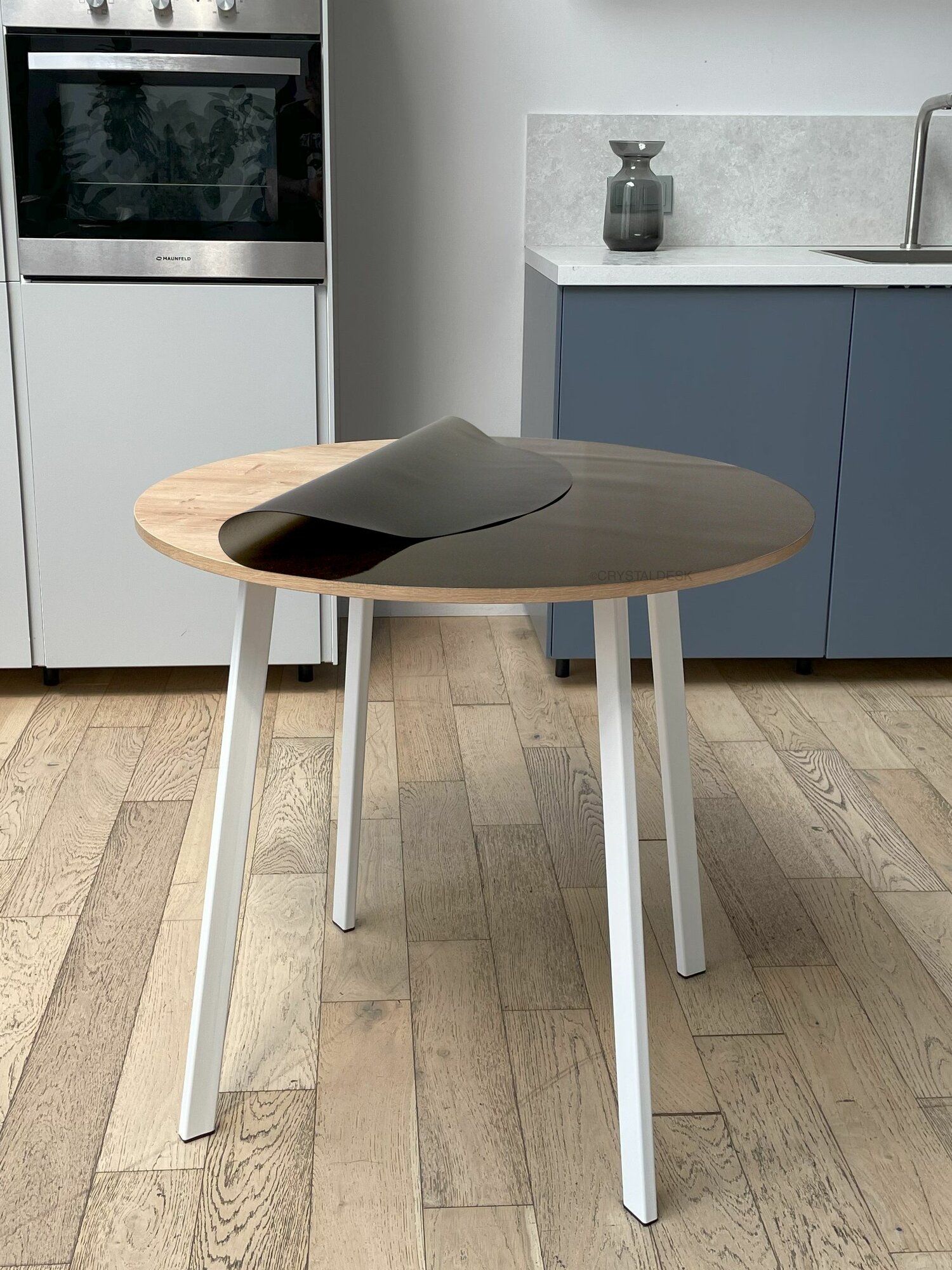 Рифленая черная тонированная скатерть на круглый стол CrystalDesk D 80 см. Жидкое гибкое стекло 1.5мм. Чёрная клеенка ПВХ.