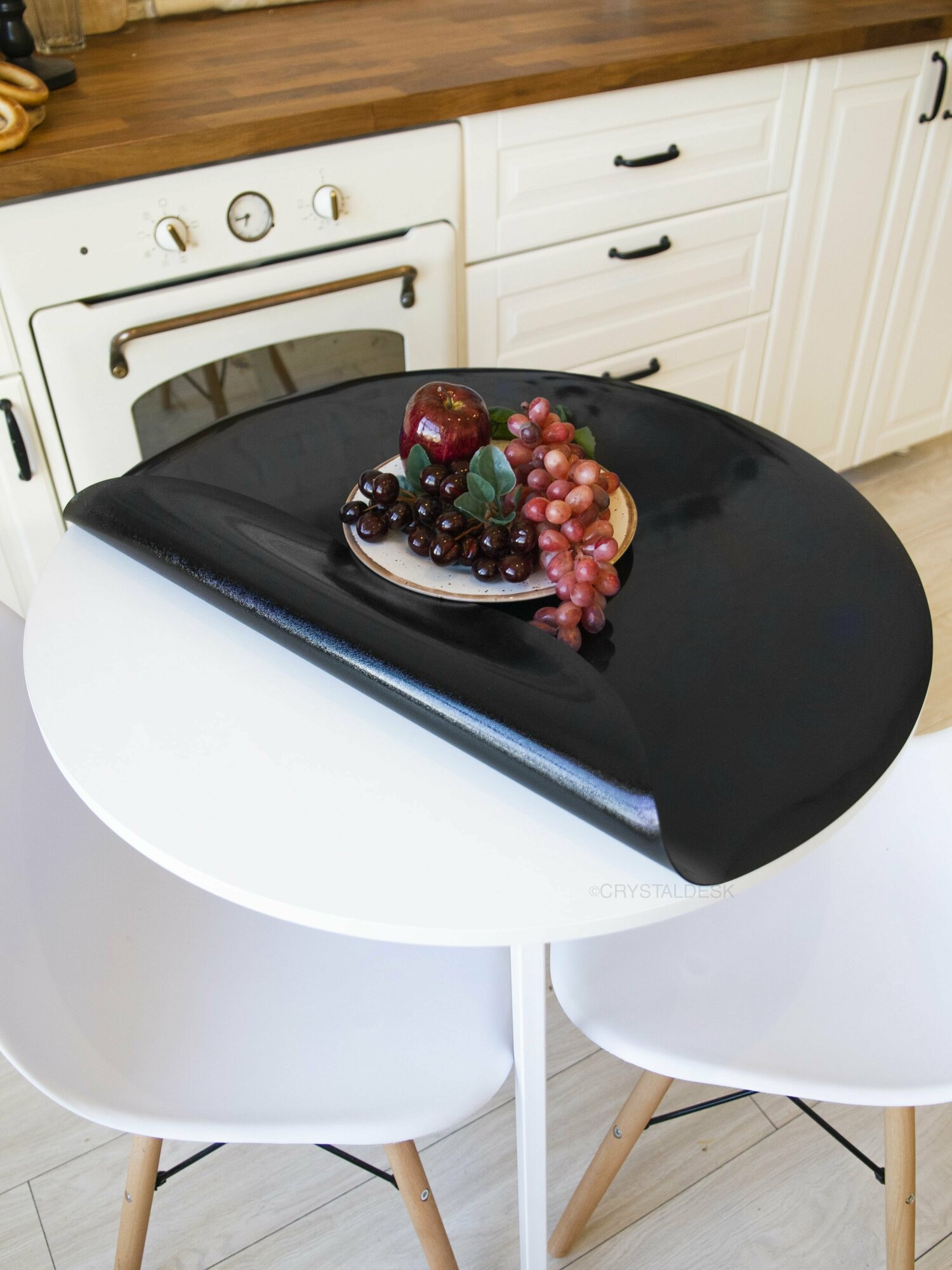 Черная скатерть CrystalDesk на круглый стол D 80 см. Жидкое гибкое стекло 0.8мм. Клеенка ПВХ.
